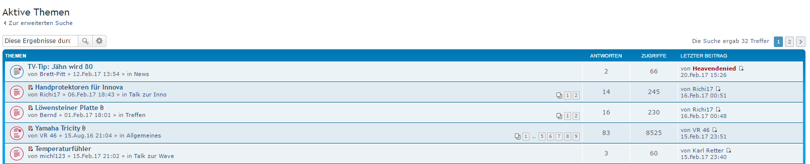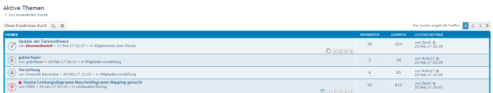 Hier mal ein Screenshot wenn ich auf "Aktive Themen" klicke: Und so sieht es im Backup von Freitag aus: Da ist doch der Ersteller sichtbar. Sieht das bei dir anders aus oder verstehe ich dich einfach falsch?