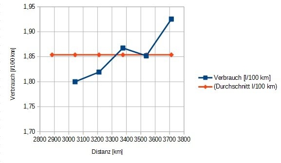 Die Kosten protokolliere ich sehr genau, das habe ich bisher nie bei meinen Fahrzeugen gemacht und möchte das nun endlich mal sehr genau wissen. Nach momentan ca. 1000 km sieht es noch nicht so günstig aus, auf 1000 km bin ich bei stattlichen 27 €/ 100 km.