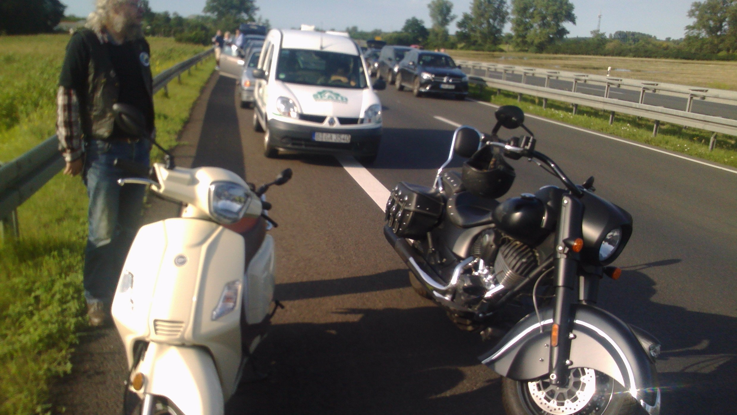 Keiner will das Teil in Zahlung nehmen, also fahr ich ihn erstmal weiter, zumal er nach Anfangsschwierigkeiten und einem Unfall jetzt seit 2500 km mackenfrei fährt.