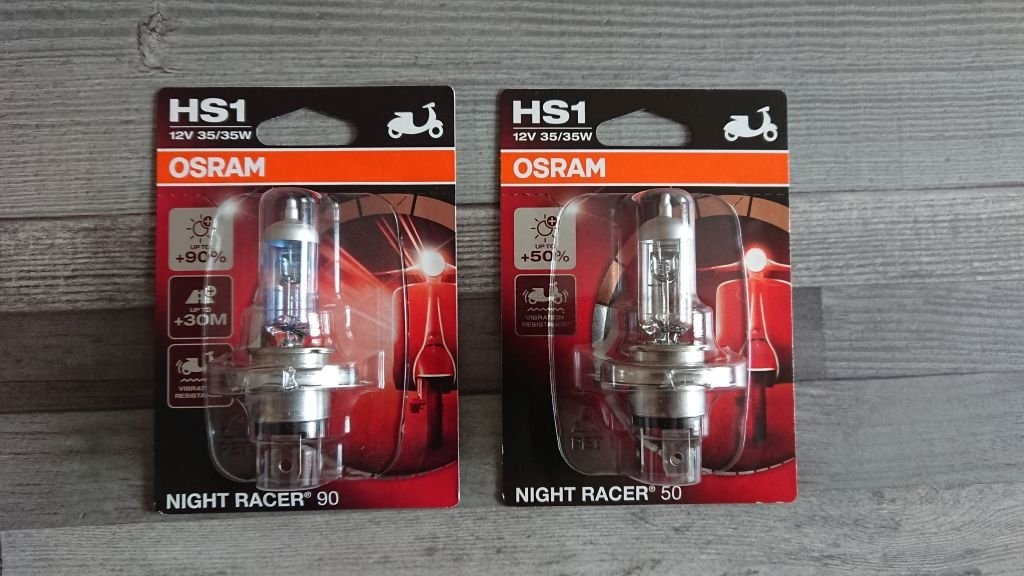 Ich werde erstmal Night-Racer HS1 nachrüsten (finde den Zettel gerade nicht, aber bei 13 V haben beide Versionen ~ 35 W Abblend- und 23 W Fernlichtleistung).