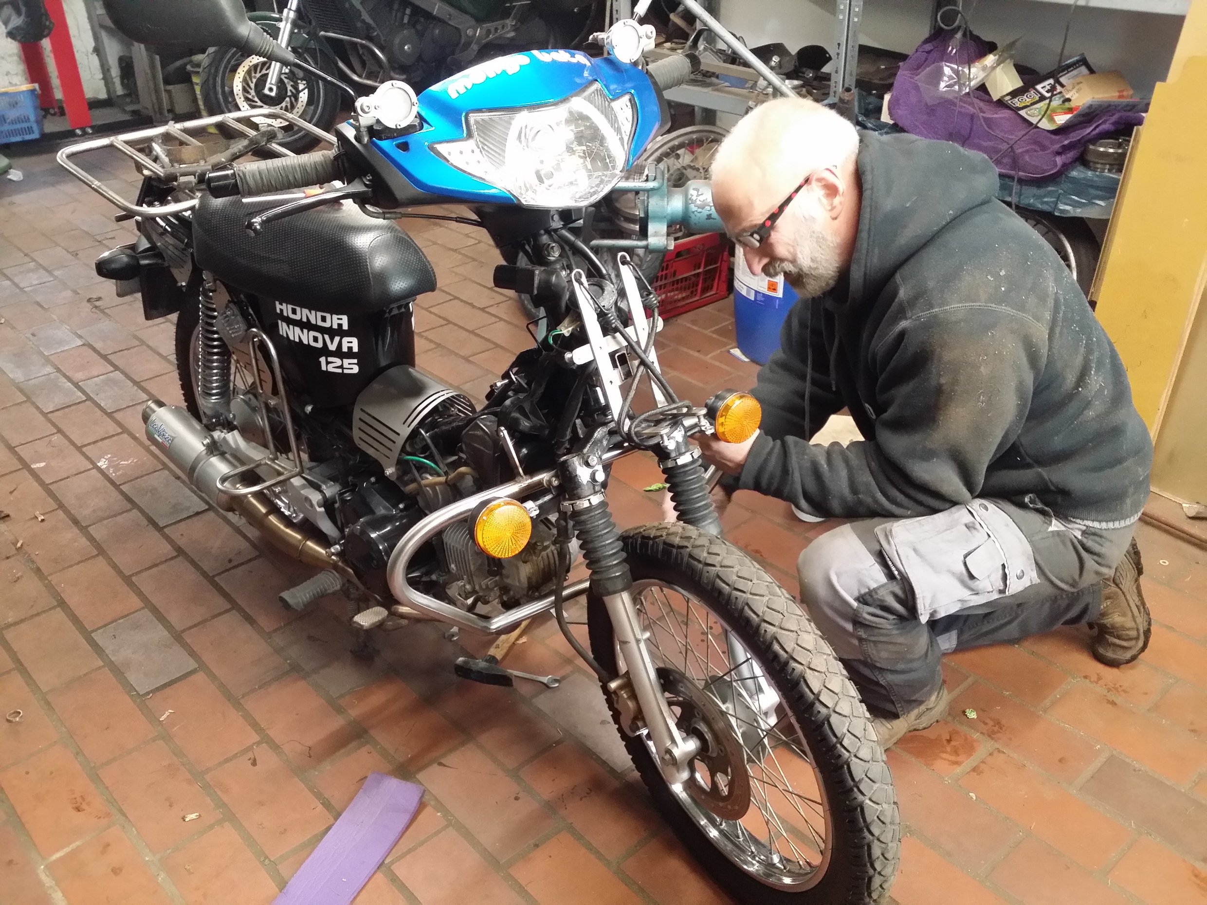 Zwischenzeitlich hatten wir Besuch von einem Innovasammler aus Aurich, der mit seiner firsch erworbenen Wave vorbeischneite. Ostfriesisch heißt das "vorbeiregnen"