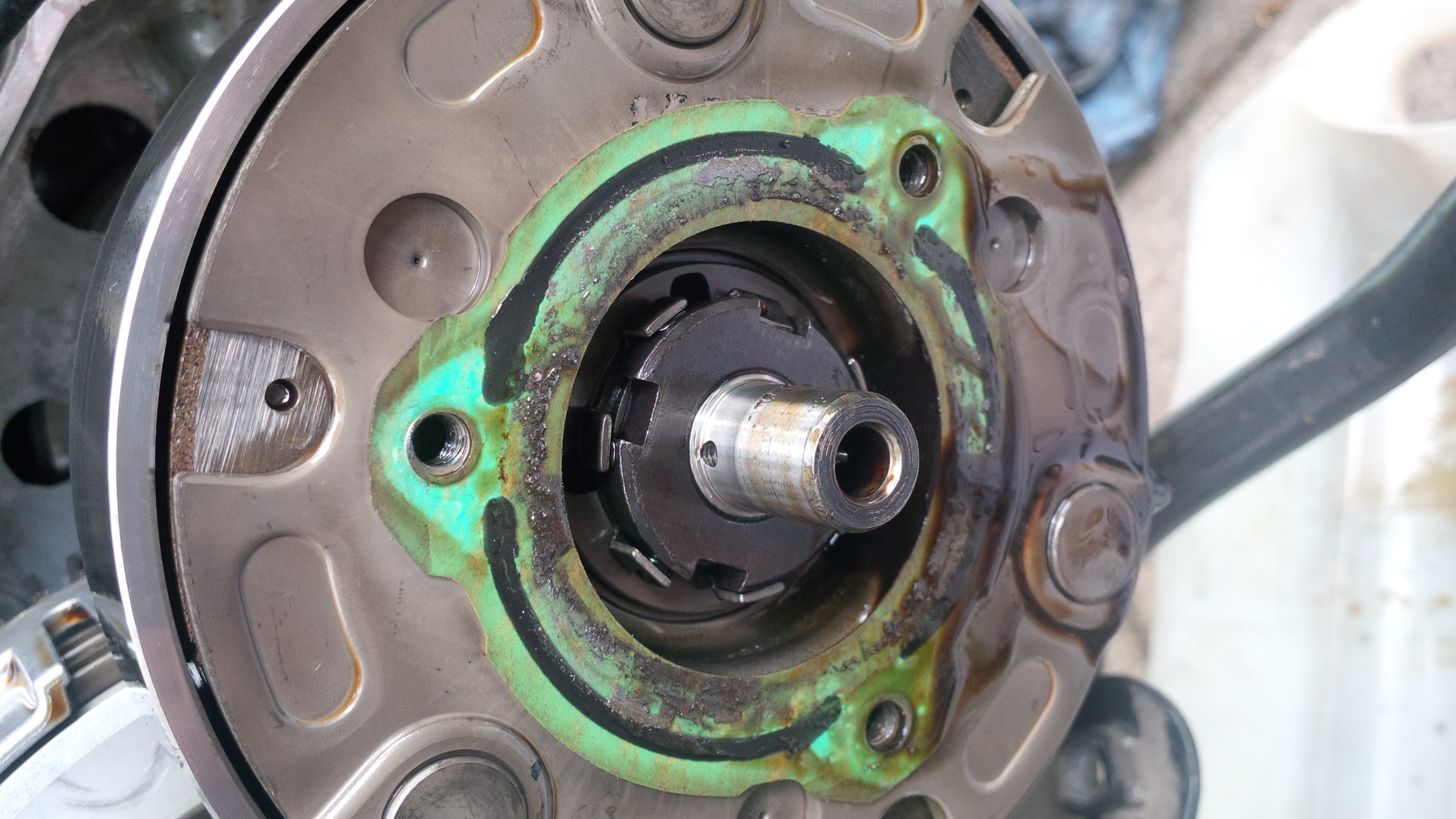 Sollte der Händler bei der vorherigen Inspektion doch die Zentrifuge gereinigt haben, gibt es Dödel die setzen die Dichtung mit aushärtender Dichtmasse ein, Z.B. Dirko HT statt Hylomar blau, in diesem Fall den Deckel rundum mit einem Industriefön, z.B. Steinel rundum an der Trennstelle erwärmen.