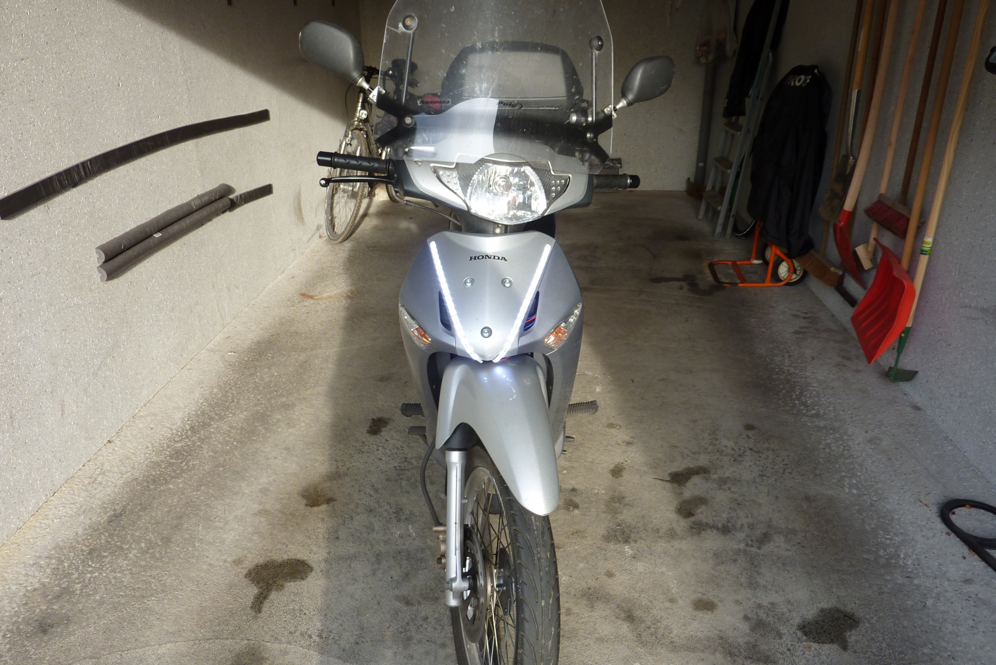 Das Licht kann über einen Schalter unter der Sitzbank separat in und Aus geschaltet werden. Kosten ca 15 Euro insgesamt.