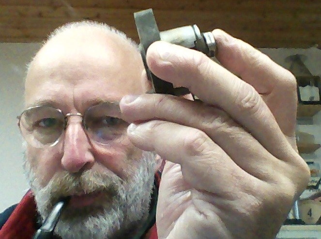 Wenn die Linsenkopfschraube ganz raus ist, sieht das SO aus. Unten in dem schwarzen Loch ist eine kleine Schlitzschraube, die man im Uhrzeigersinn