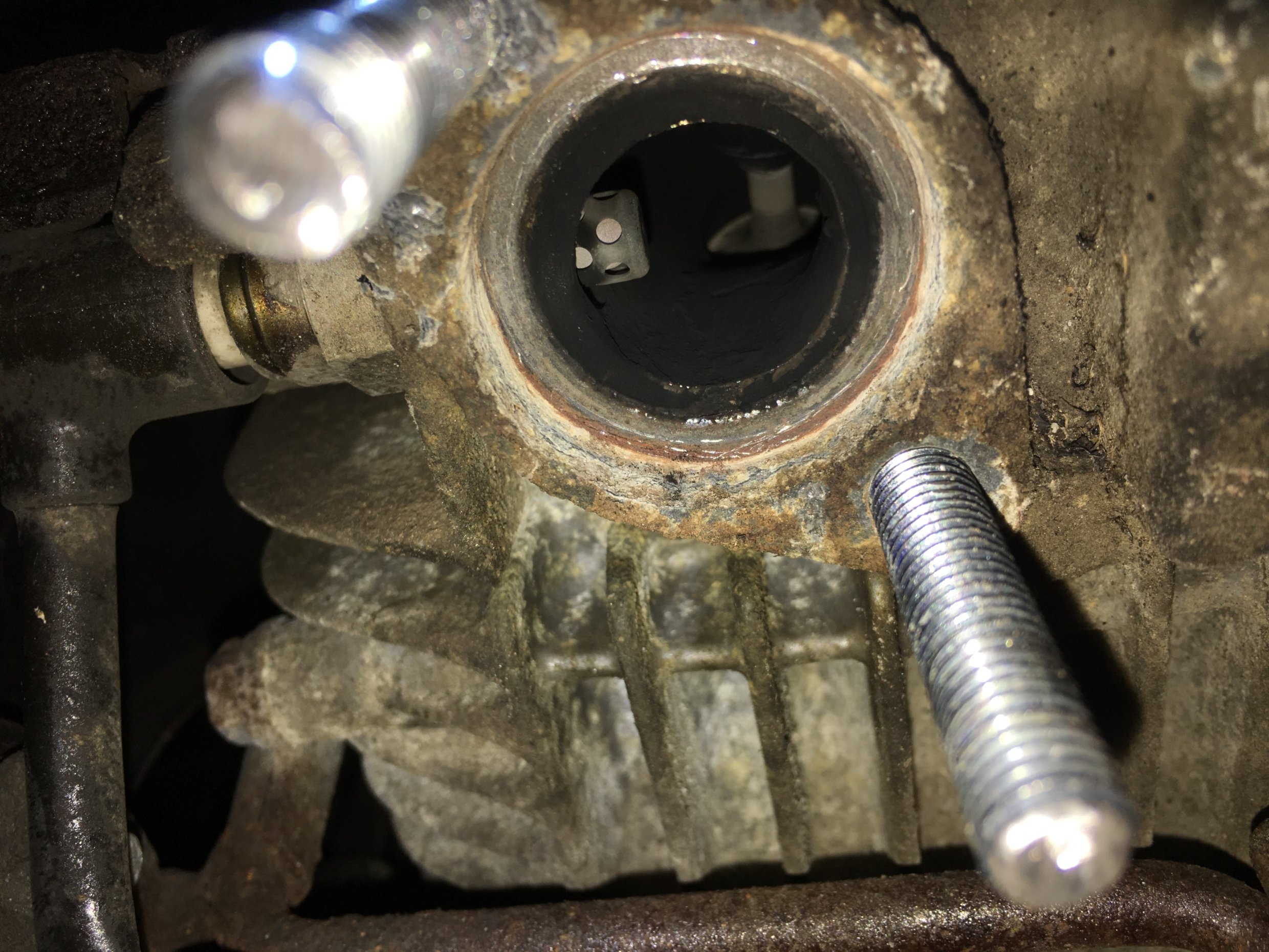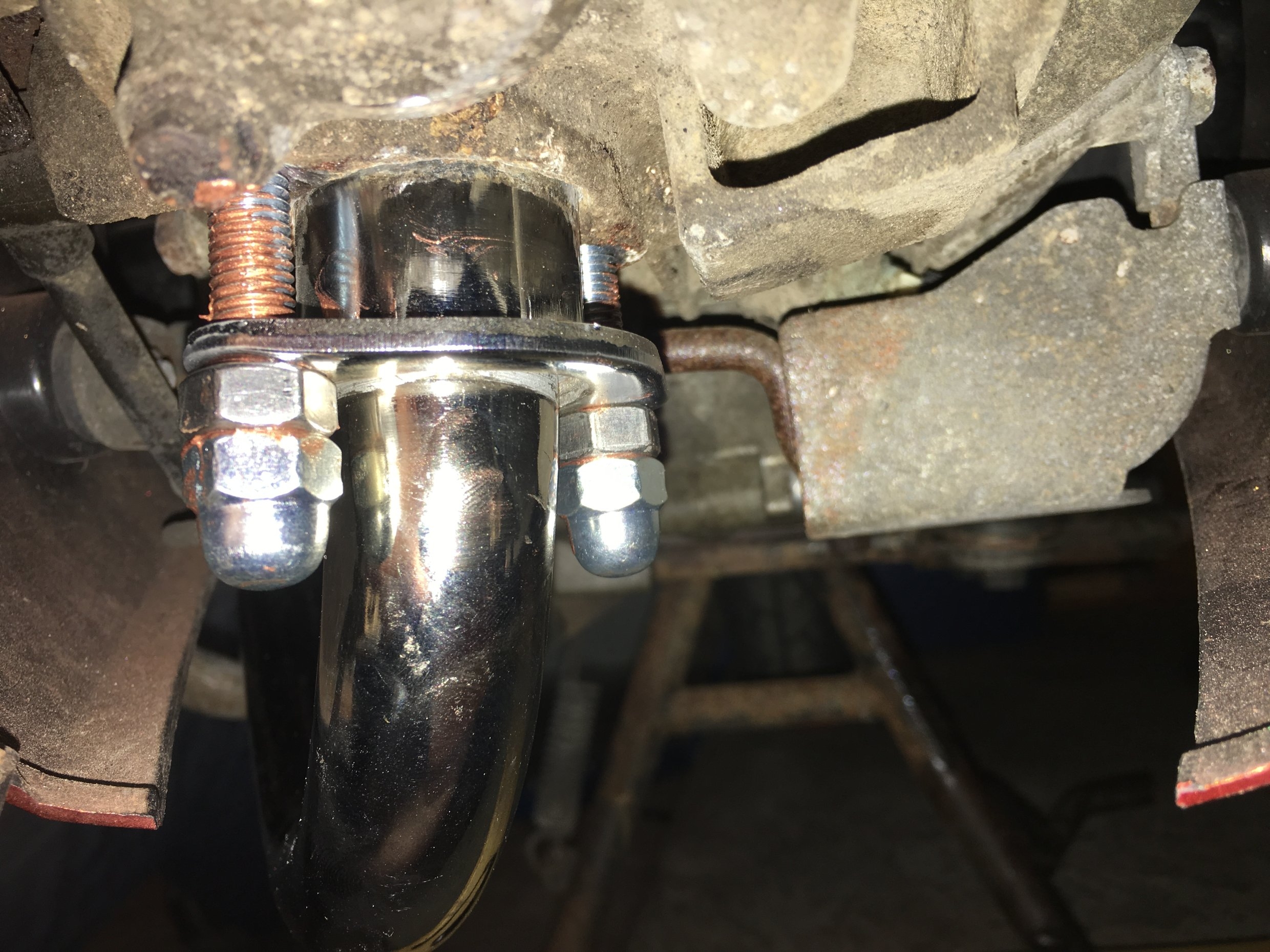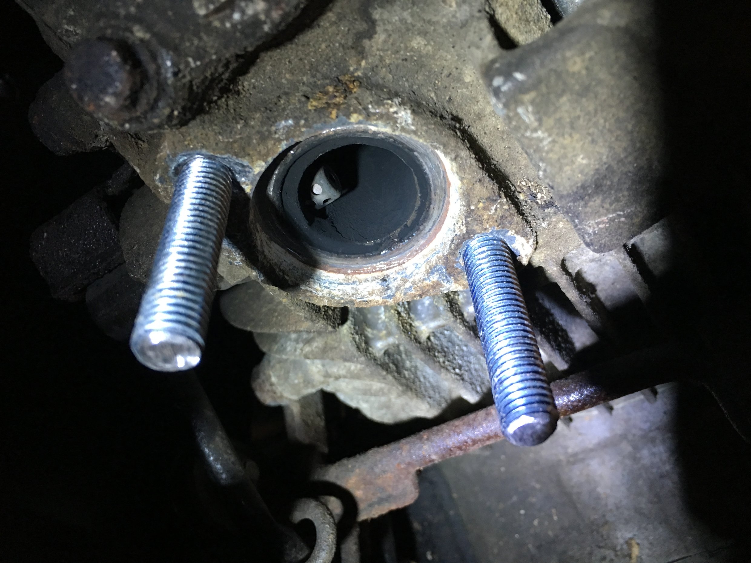 Stehbolzen sind raus, war kein Problem. Die neuen Gewindestangen drin, verklebt, Auspuff montiert. Reichen 3 von 4 Verbindungen?