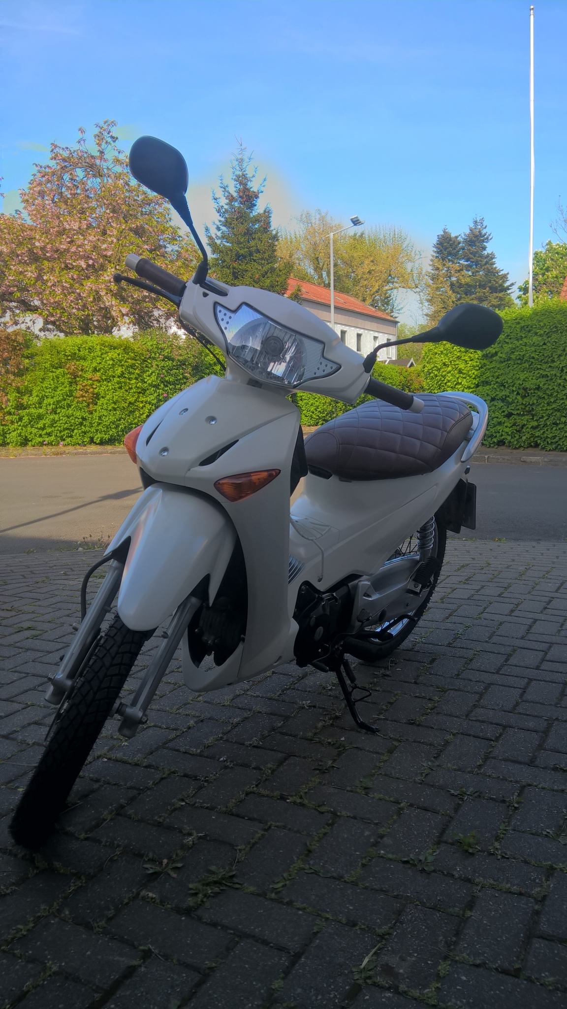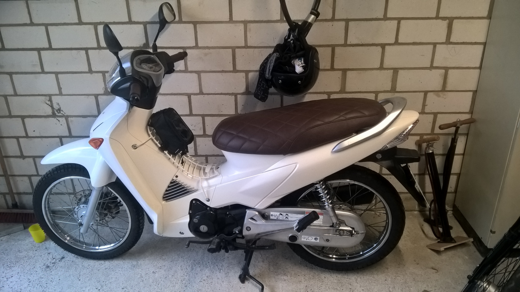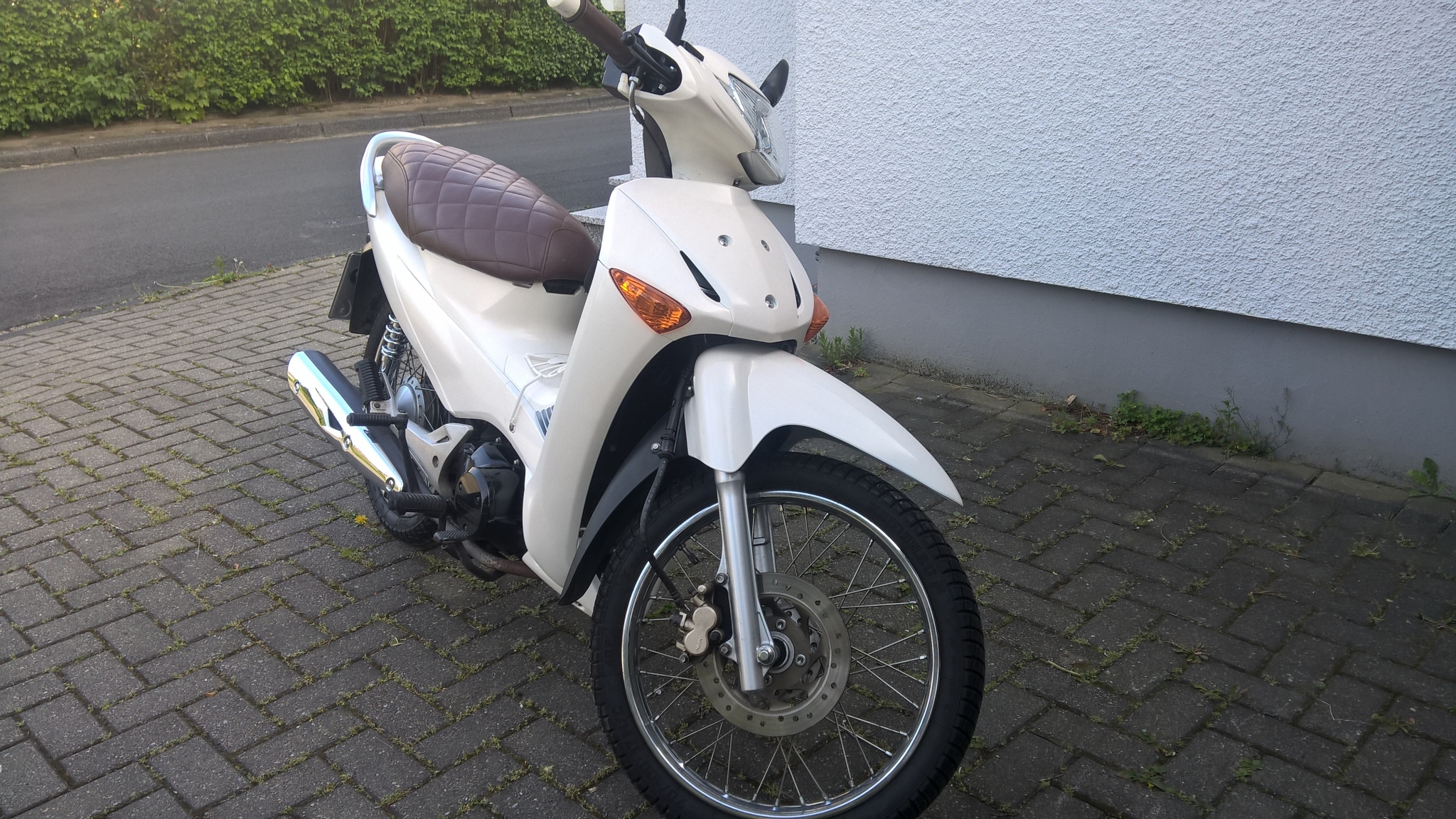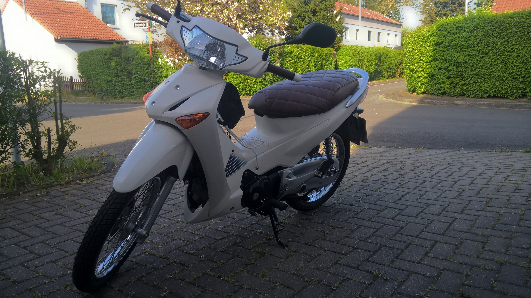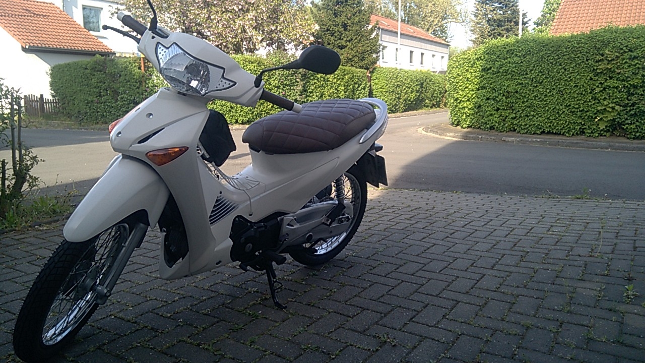 Jetzt muss ich nur noch mal bei Gelegenheit den inneren Teil der Lenkerverkleidung gegen eine weiße tauschen - gedippt ist die schon. Aber beim letzten Mal war die so störrisch (da habe ich sie nicht abbekommen - musste ja nicht sein, so habe ich es sein lassen), dass ich mich nicht dazu motivieren kann, sie bei dem kalten Wetter abzunehmen. Müsste sie also vorher Warmfönen damit bloß keine Haltenase abbrechen.