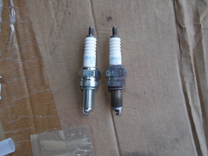 Gleich noch die Zündkerze gewechselt, der Erstbesitzer hatte beim Kauf eine zweite vom Händler bekommen und mir mitgegeben.