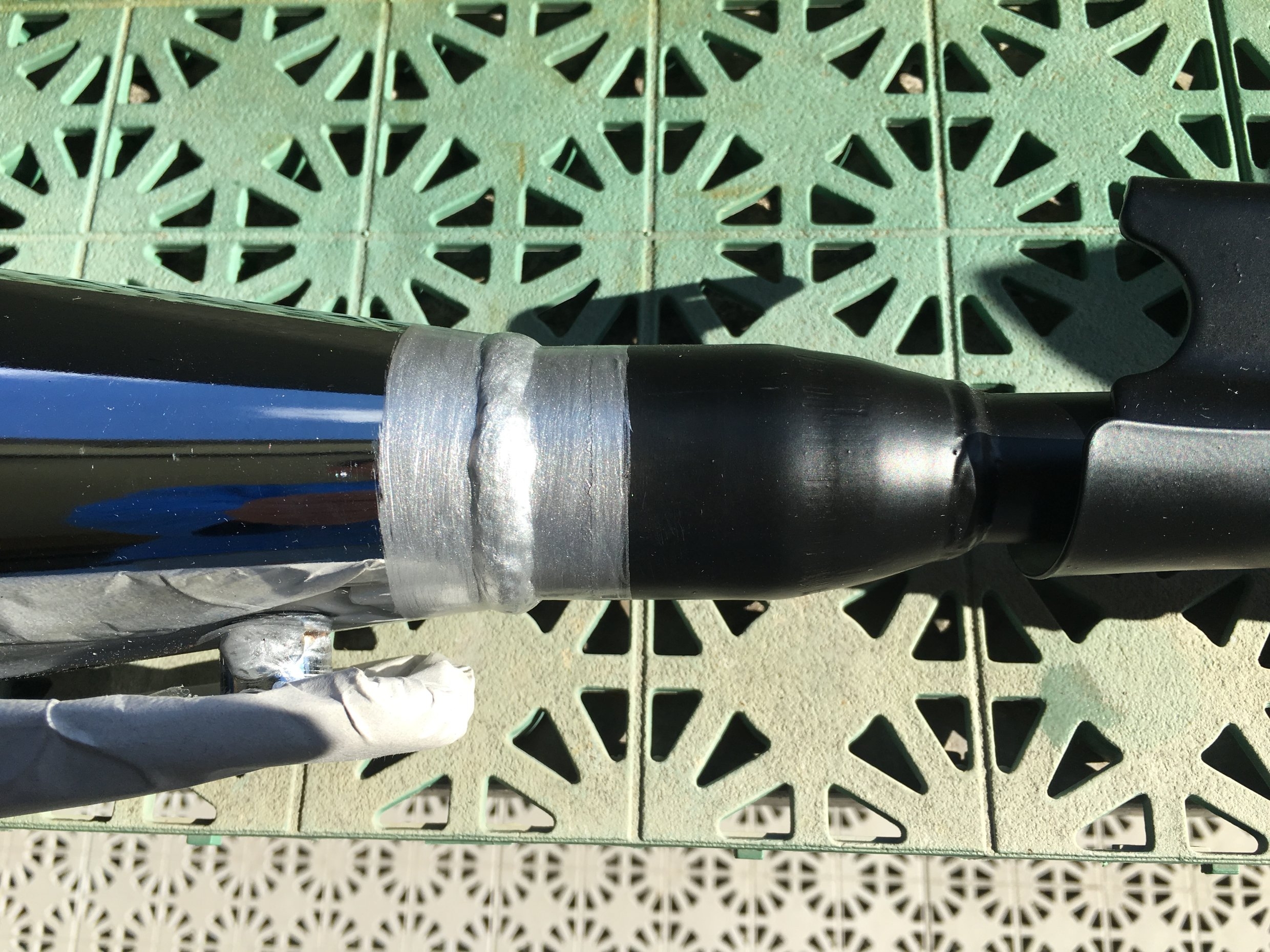 Der Krümmer ist dünner (als der Erste) und enger gebogen. Dadurch passt er wohl knapp ans Moped ABER: Der Winkel vom Flansch zum Motor passt nicht, der originale Krümmer ist mehr gebogen.
