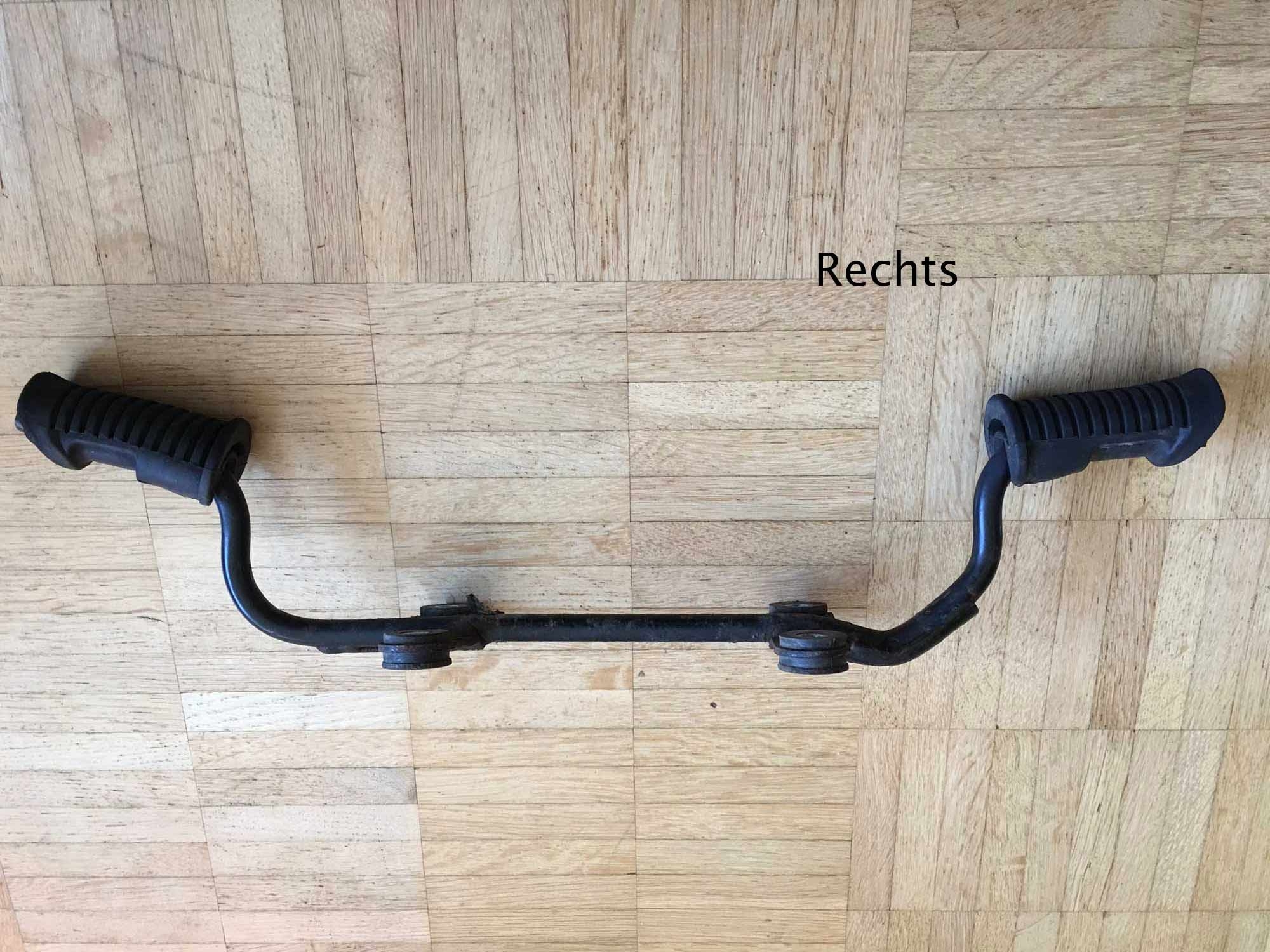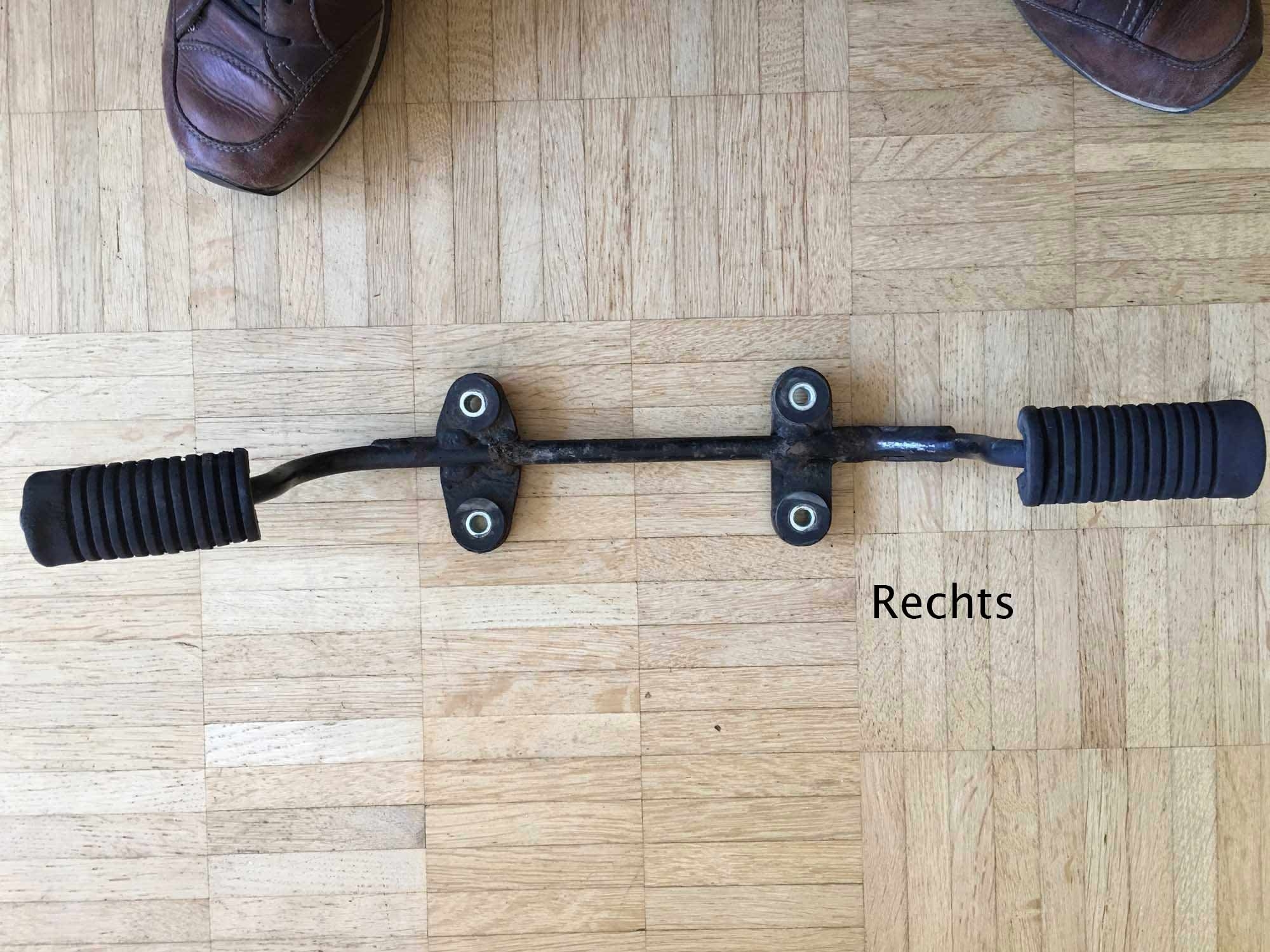 Normal sind links und rechts die Fußrasten waagrecht und nicht nach oben gebogen.