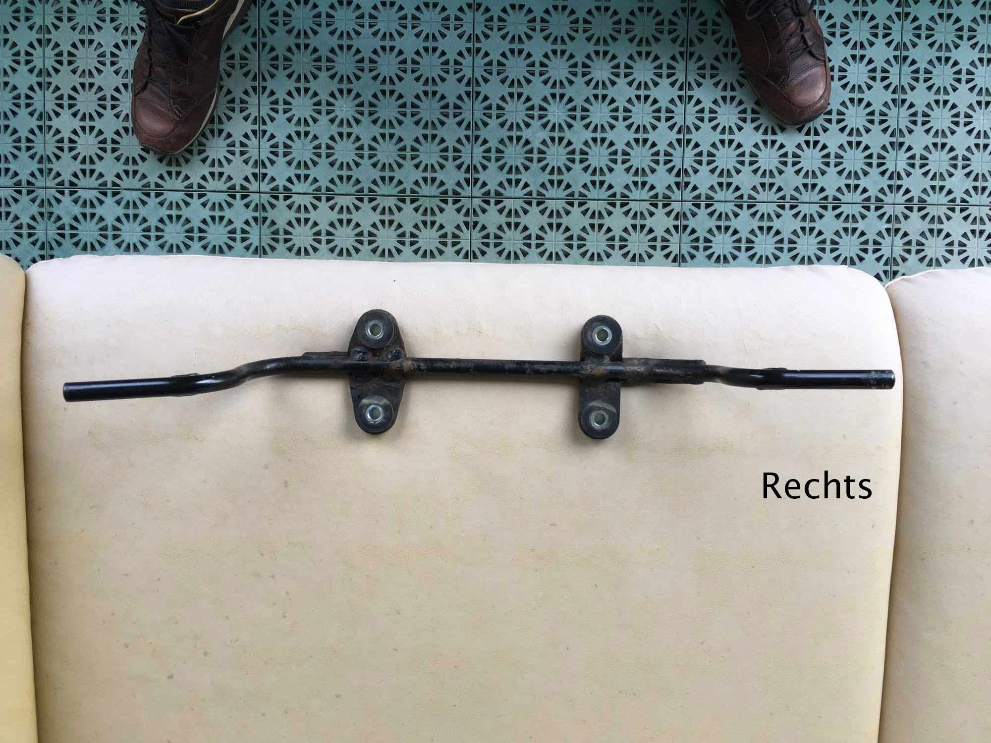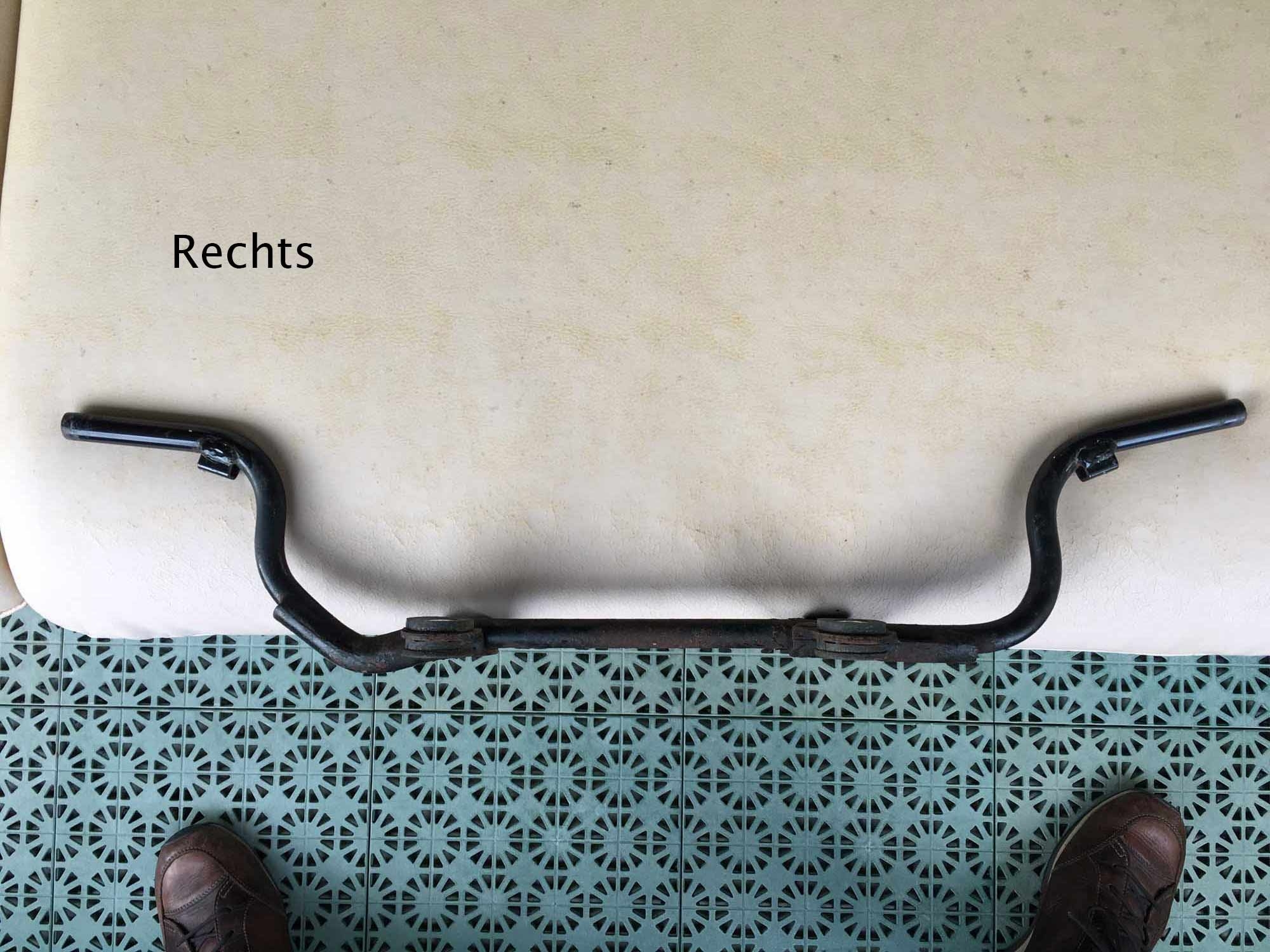 Mir scheint, links ist sie sicher mal nach Hinten und Oben verbogen. Rechts fast nur nach Oben. Nicht sicher bin ich mit dei dem flachen V was unter dem Auspuff durch geht.