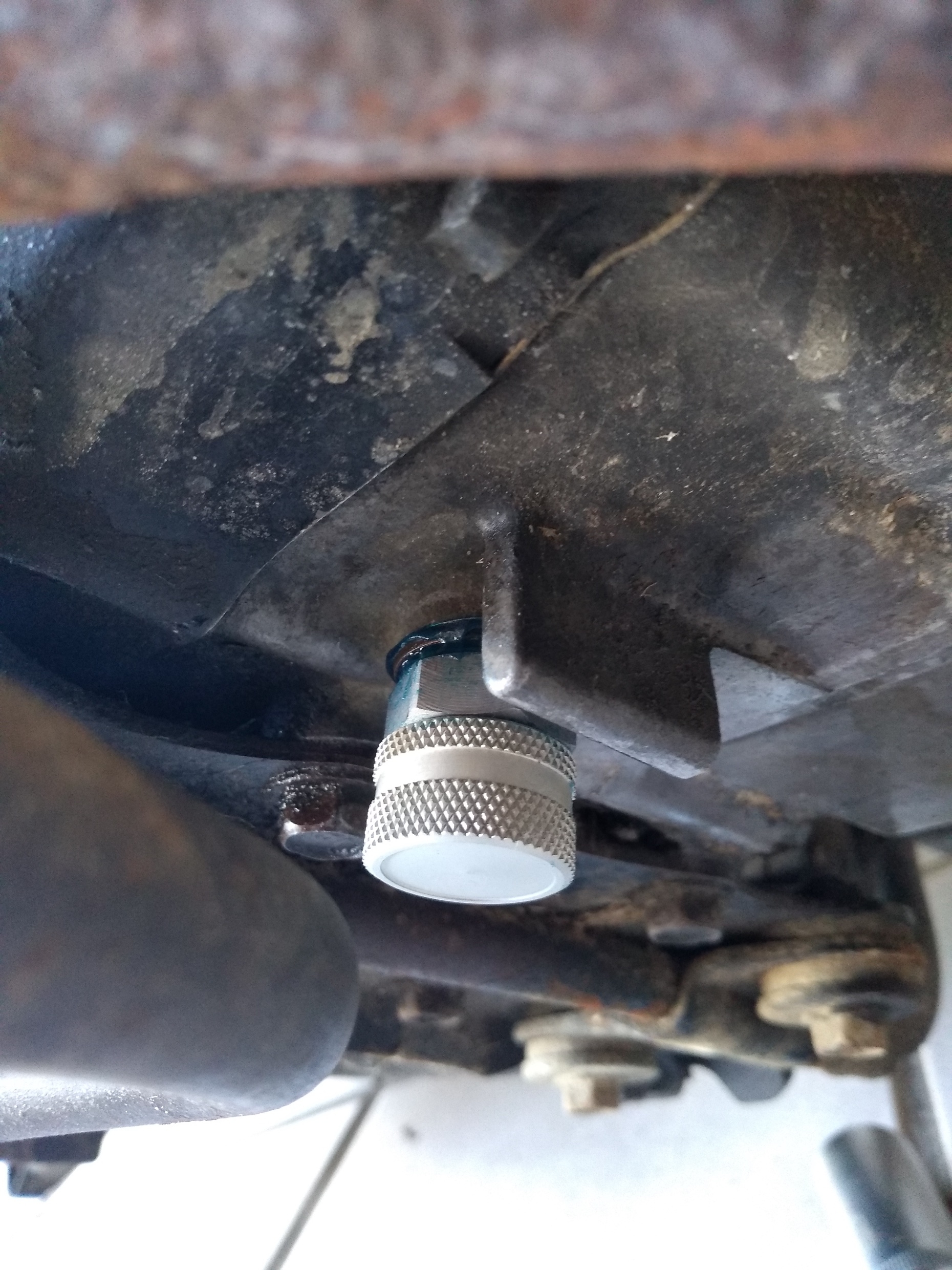 Heute schraubte ich die Magnet-Ölablassschraube raus, kam gleich die Hülse mit. :?