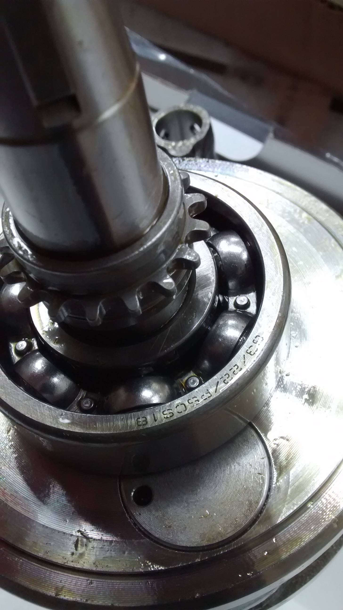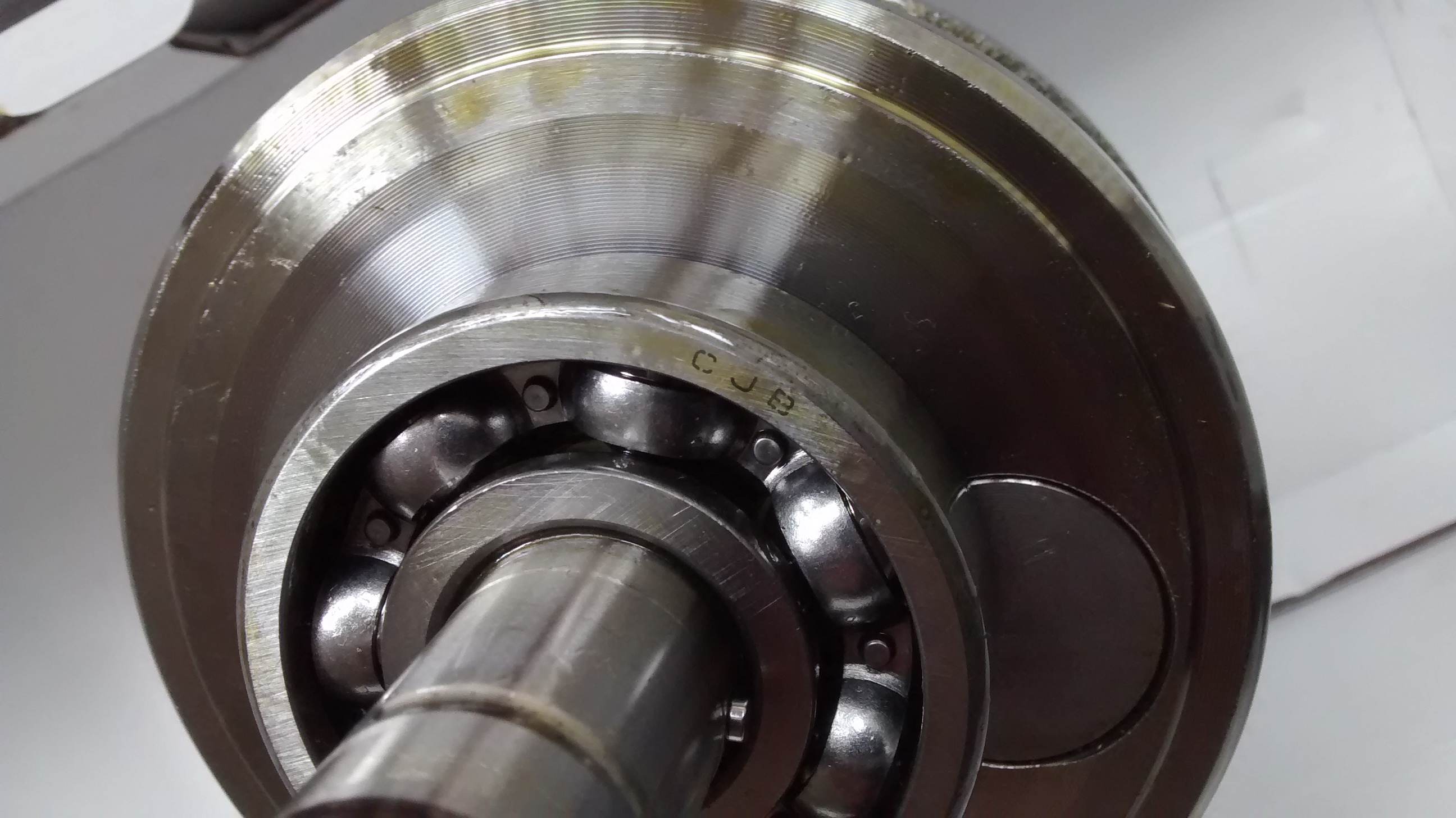 Ich würde ein Original Lager für die Fliehkraftseite (also re.) kaufen und mit der Beschriftung ( im Gehäuse nach oben d.h. Richtung Pleuel ) montieren.