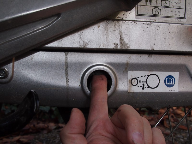 Nach oben läßt sich die Kette soweit drücken, dass mein erstes Fingerglied bis zur Gelenkfalte im Schauloch verschwindet.