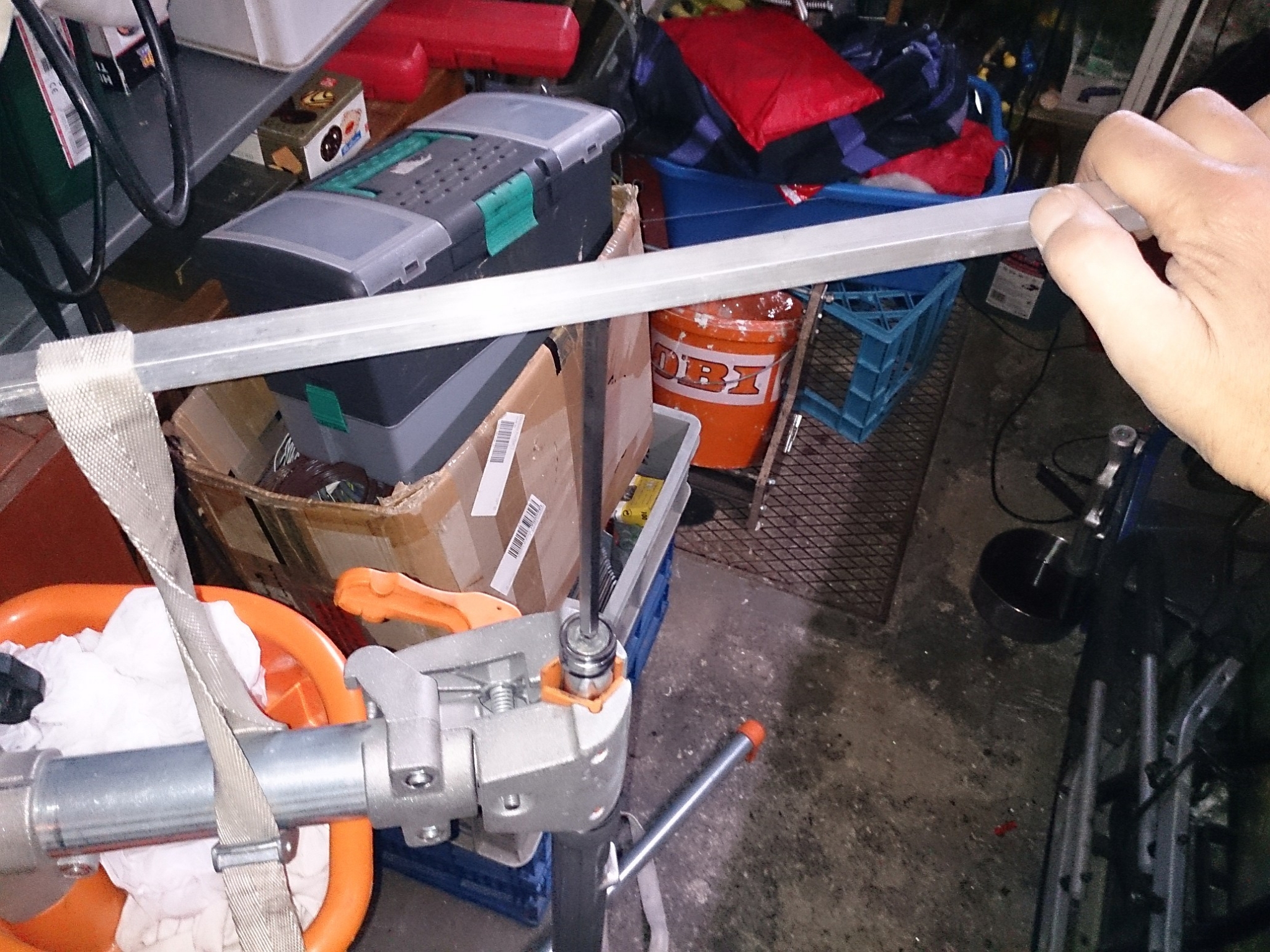Ich habe das Standrohr in einen Fahrradmontageständer eingespannnt (Schraubstock mit Gummi- oder Alu-Backenauflage geht sicher auch), in ein Stück Alu-U-Profil einen großen gewinkelten Inbus-Schlüssel mit dem kurzen Ende einglegt und die Spitze des langen Endes in die Stopfenmulde gedrückt, einen Gurt als Hebelgegenlager angebracht und das lange Ende des Aluprofils als Hebel heruntergedrückt (wegen des Hebels mit geringem Kraftaufwand). Dann war es ein Leichtes, mit einem dünnen Schraubendreher hinter den Sicherungsring zu hebeln, und ihn nach und nach herauszufummeln, wobei ich auch die zweite Hand mit nutzen konnte, als ich vornübergebeugt mit der Brust auf den Stopfenhebel gedrückt habe. Einbau entsprechend umgekehrt...