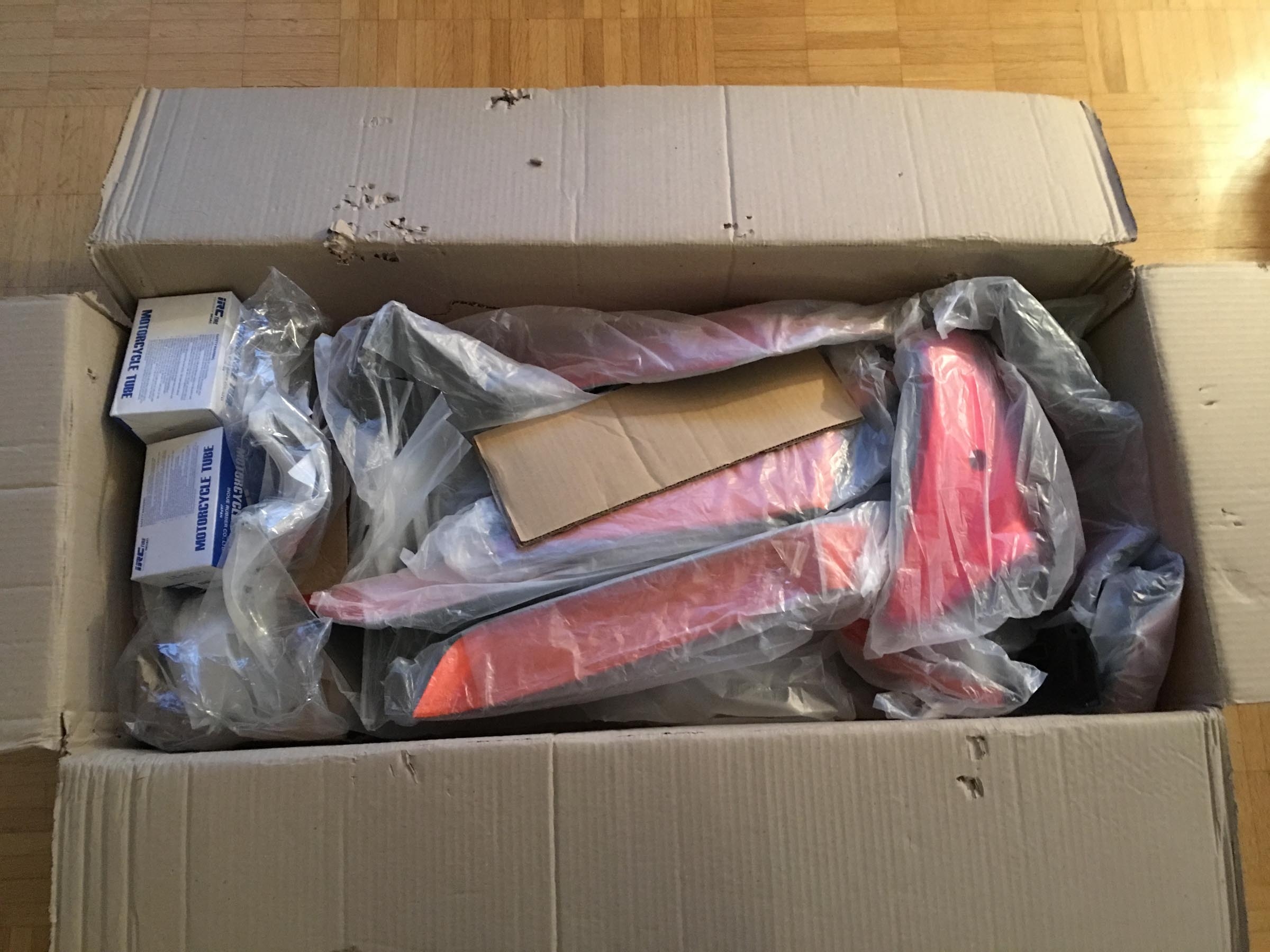Böcki: Nein ohne Versand und Zoll. Versand war um 60€. Im Paket waren noch Schläuche, Felgenbänder, Lampen Clips. Zoll und Steuer war um 30€.