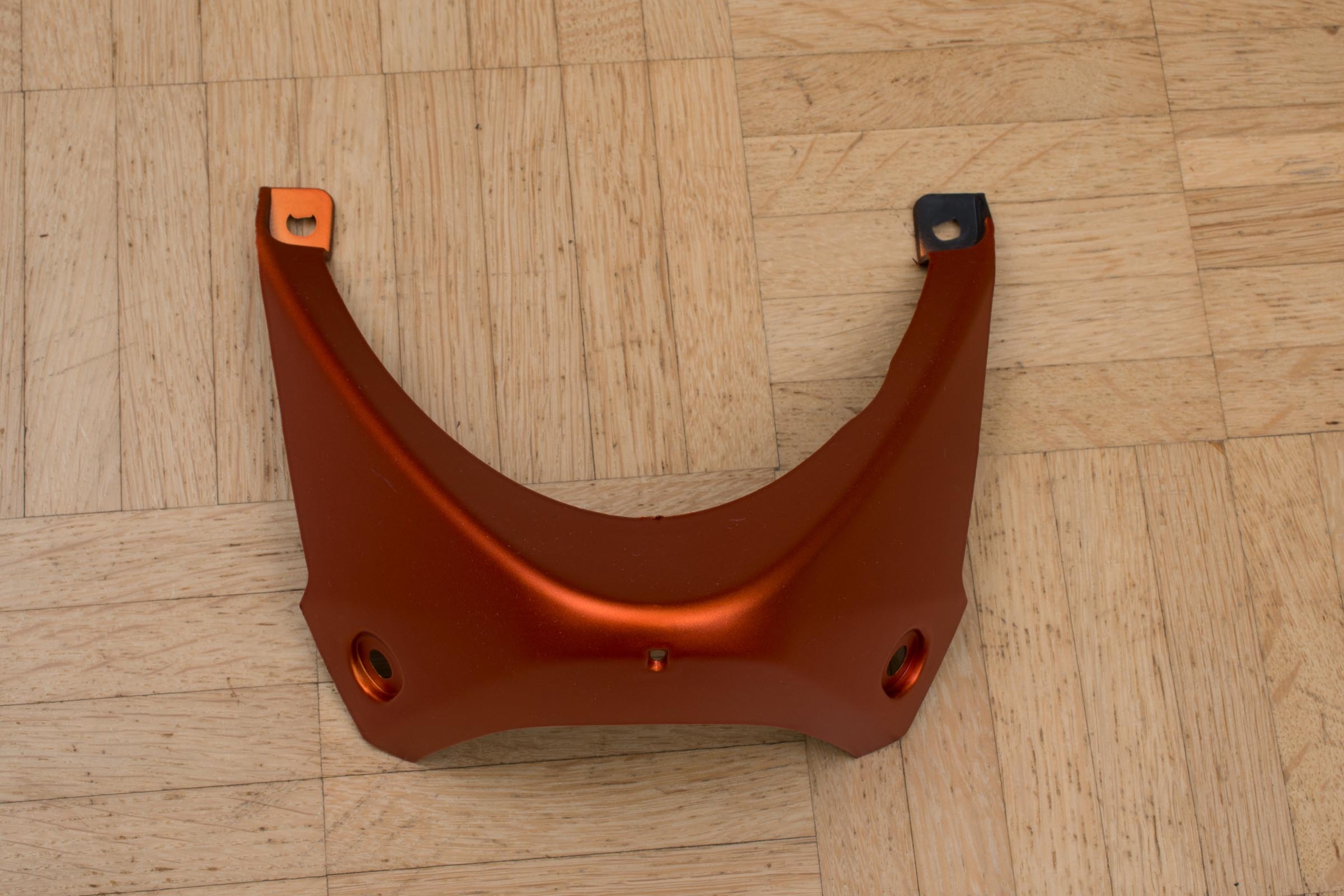 Die Halterung der Lenkerverschalung also die schwarze Rückseite. Die ist original Honda, ebenfalls bei Mototrade bestellt. Die Aluteile sind nicht Teil vom Body Kit.