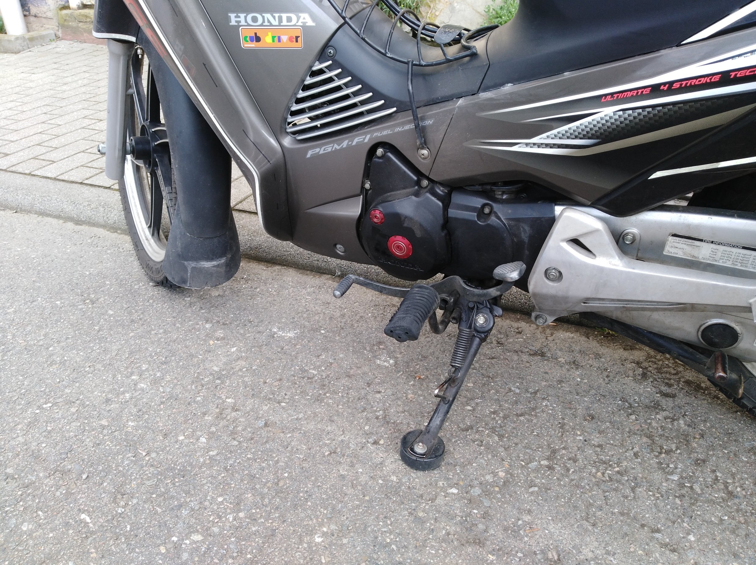 Auch bei einer neuwertigen Inno ist die Seitenständerposition grenzwertig und die Auflagefläche des Ständers sehr klein.
