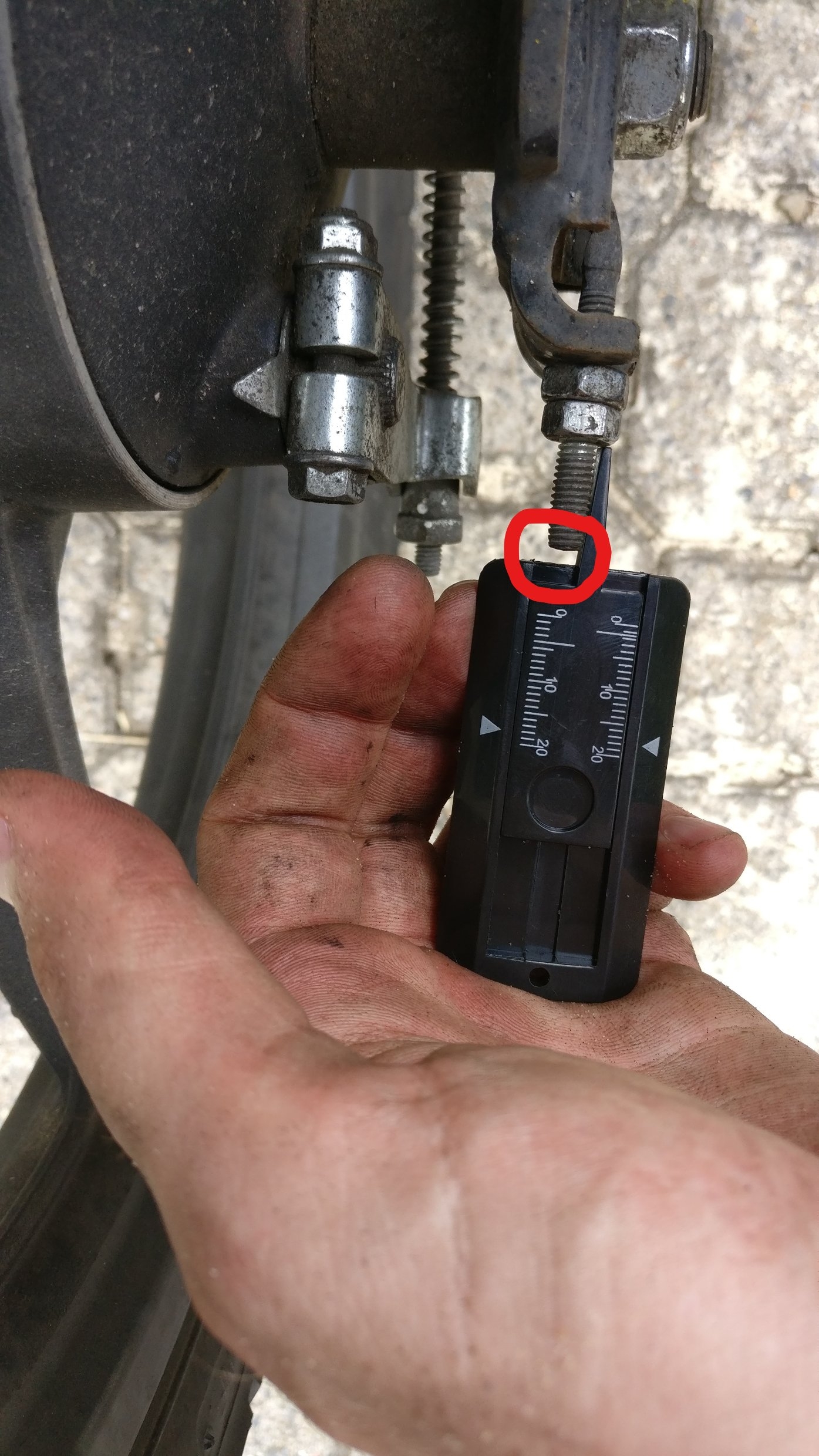 So ganz richtig fühlte sich das aber auch nicht an... und ich hatte das Gefühl, dass das Hinterrad etwas nach rechts ausgerichtet war. Kein Wunder, die Orientierungsstriche (keine Ahnung wie die fachlich korrekt heißen) waren beim 3,5. und 4. Strich.