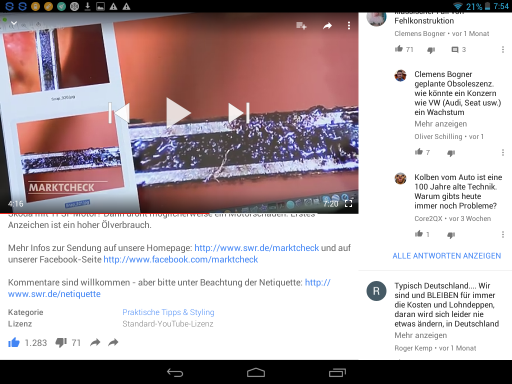ich habe mir das TFSI Problem in Youtube nochmals angesehen. Die kleinen Bohrungen im Ölabstreifring, sh. Screenshot, verstopfen und nichts (auf der ganzen weiten Welt), auch nicht MATHY-M, kann die Ablagerungen entfernen.