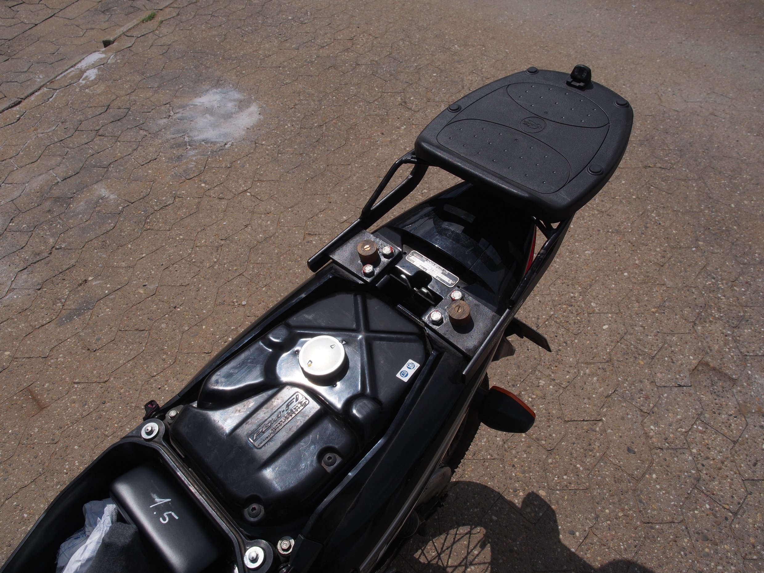 Der damals verkaufende Händler hat den Durchstiegsgepäckträger unsachgemäß montiert, ein Riss in der Verkleidung war die Folge. Mit Distanzstücken neu montiert sitzt er aber spannungsfrei.