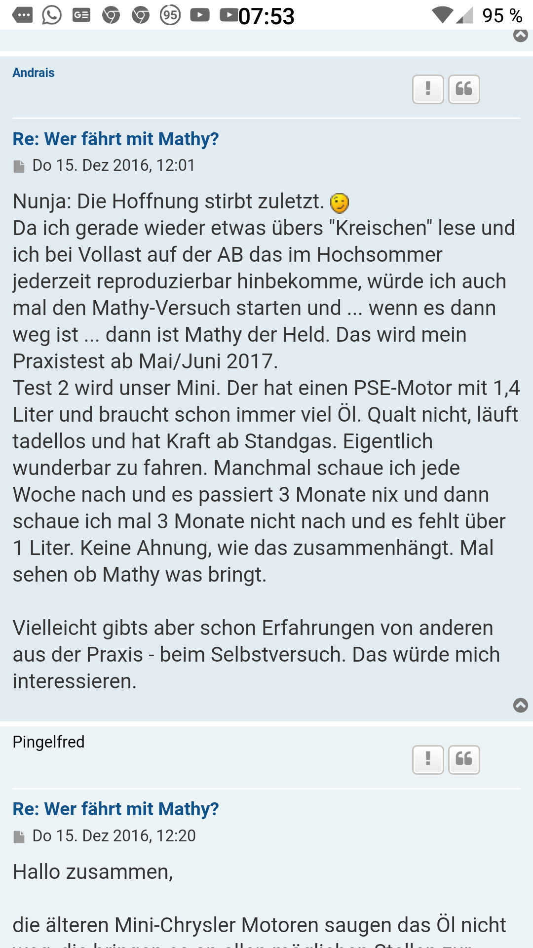 Mathy ist keine Wunderdroge und einen Ölfresser kann man nur mit Altbewährten Methoden kurieren.