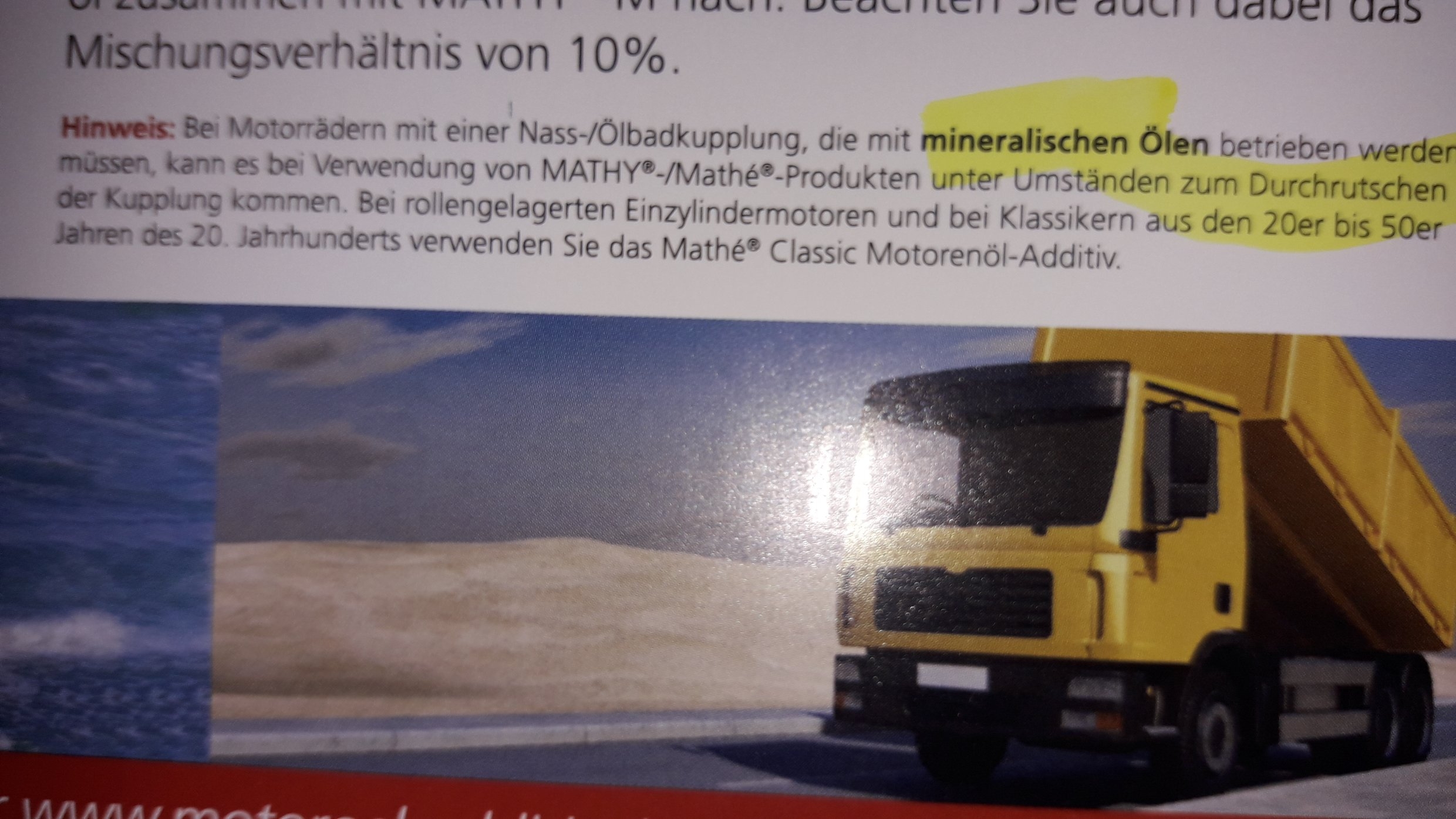 3. Mathy räumt ein, dass bei Zusammenkommen von Mineralöl, Mathy-M und Nasskupplung es vereinzelt zum Kupplungsrutschen kommen kann!!!