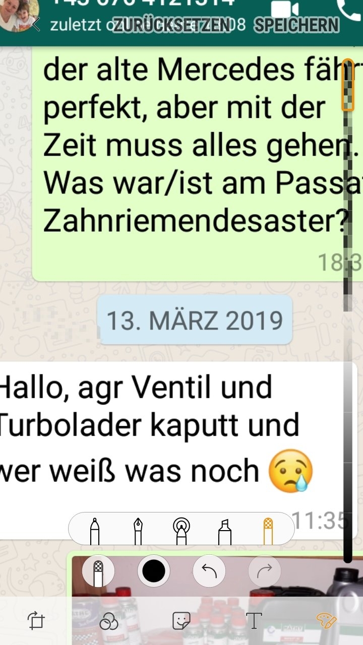 Nach Ostern kriege ich das Auto, das von Honza sehr gut behandelt und sauber gehalten wird, zurück. (er kriegt dann "Silberwolke") Hani, die Schwester meines Schwiegersohnes lässt ihren schwarzen Passat TDI Kombi mit Turbo+AGR-Schaden tatsächlich reparieren. Schaumamal, werni883