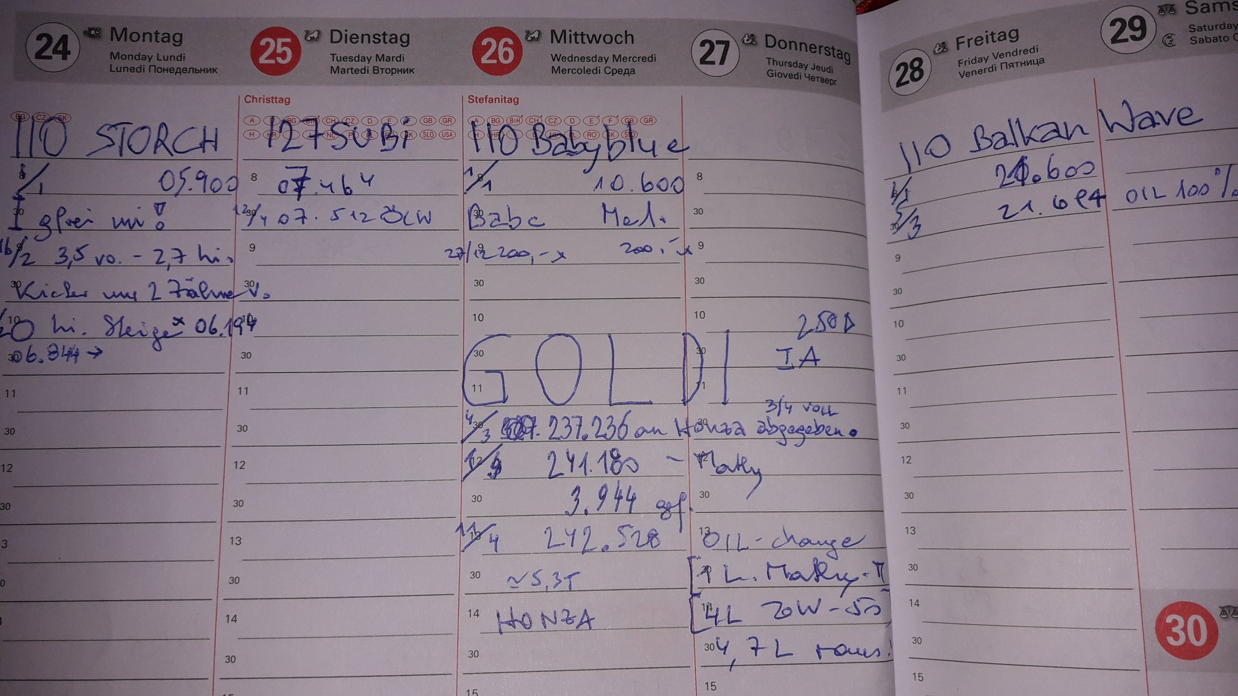 Am heutigen 1. April war Jan/Honza bei mir, dass ich die Motorinnenreingung starte. In diesen 4 Wochen hatte er ~ 3.900km bei 6,8 Liter/100km zurückgelegt.