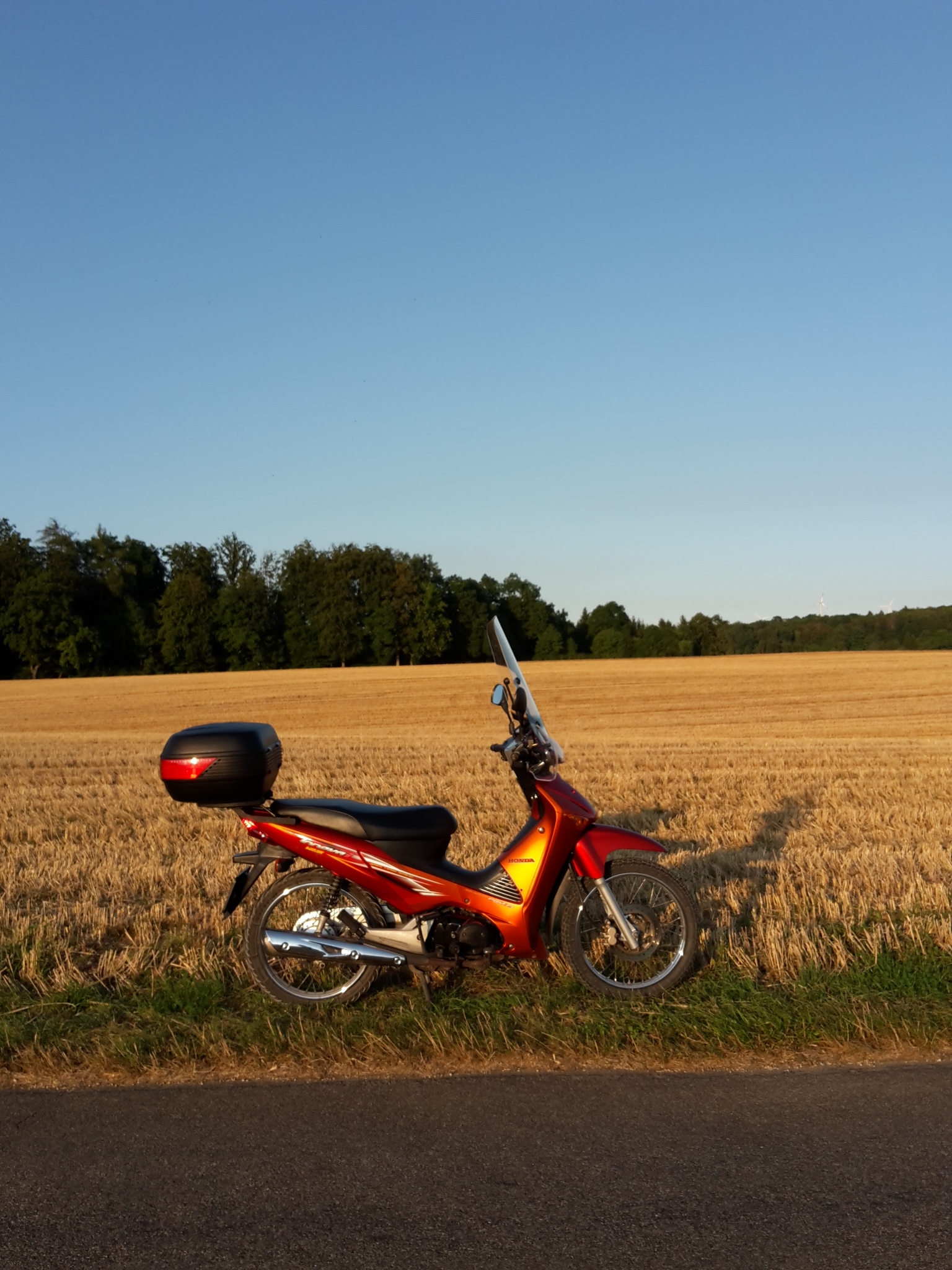 Krümmer gibt es bei hood.de von Motorlandasia für 40,- inkl. Versand von Thailand. Ich habe mir mal selbst welche von dort mitgebracht, gibt es in jedem Mopedladen.