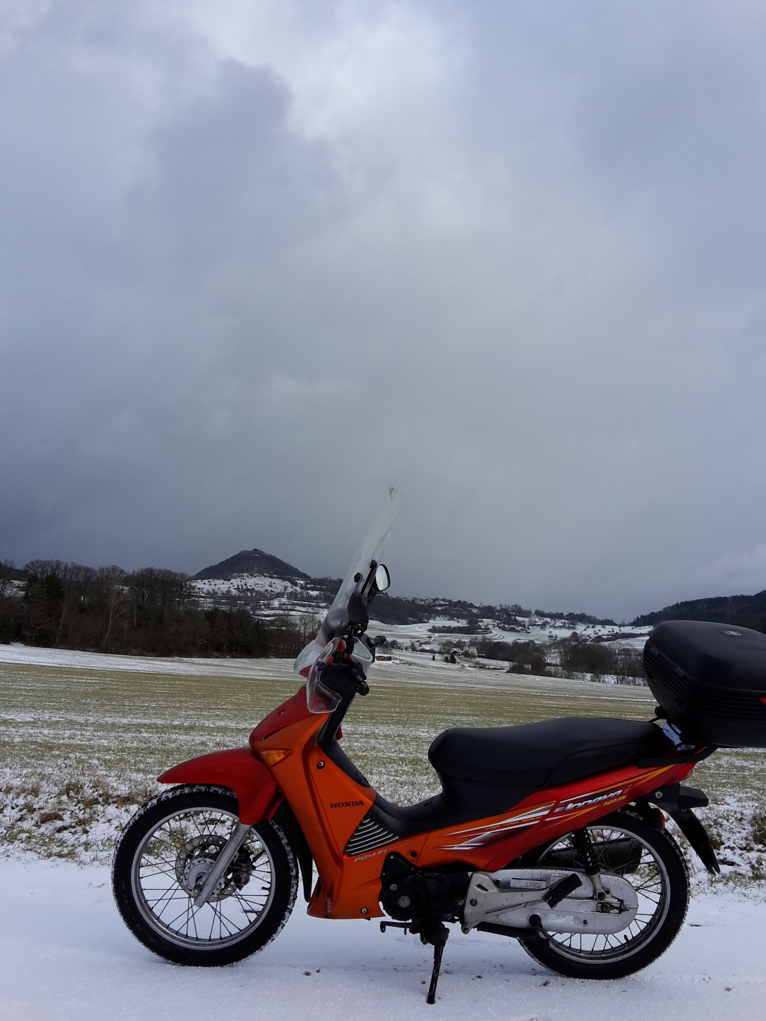 Ab und zu muss ich einfach mal raus, und mit dem Moped ne Runde drehen. Das Hirn auslüften. Das dauert bei Temperaturen um die null Grad dann ca. eine Stunde bis ich durchgefroren bin. Hat aber super Spaß gemacht.