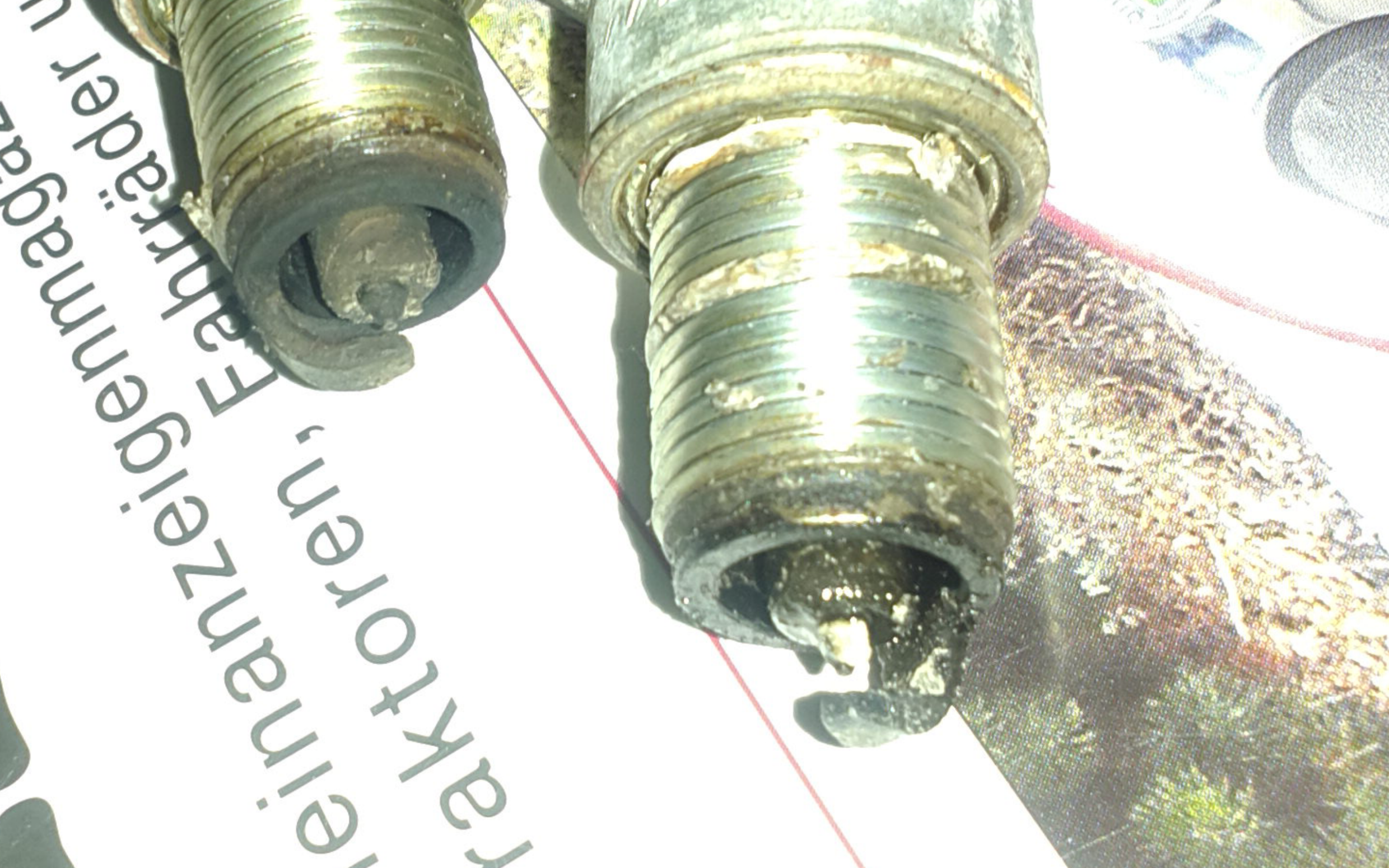 Dann nahm ich die NGK-Iridium Kerzen raus, steckte diese in den US-Reiniger, baute alte BOSCH Kerzen ein, konnte mit Schwierigkeiten starten und es rauchte 30 min lang fleissig, hauptsächlich links. Mit den Bosch geht die Drehzahl im Leerlauf warm bis 1.100 Touren.