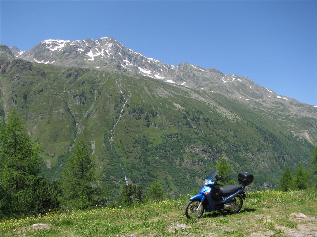 Die Alpen gehen problemlos mit der Innova. Bergauf tut sie sich etwas schwer, und meistens ist der dritte oder zweite Gang nötig, und ja, manchmal wird der Motor dabei frittiert.
