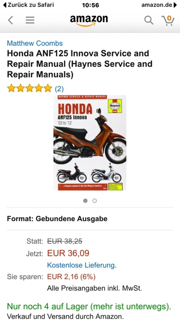 heute bei ebay gesehen, dass es jetzt von Haynes eine Reparaturanleitung für die Inno gibt (engl. Ausgabe). Preis incl. Versand 39,95.