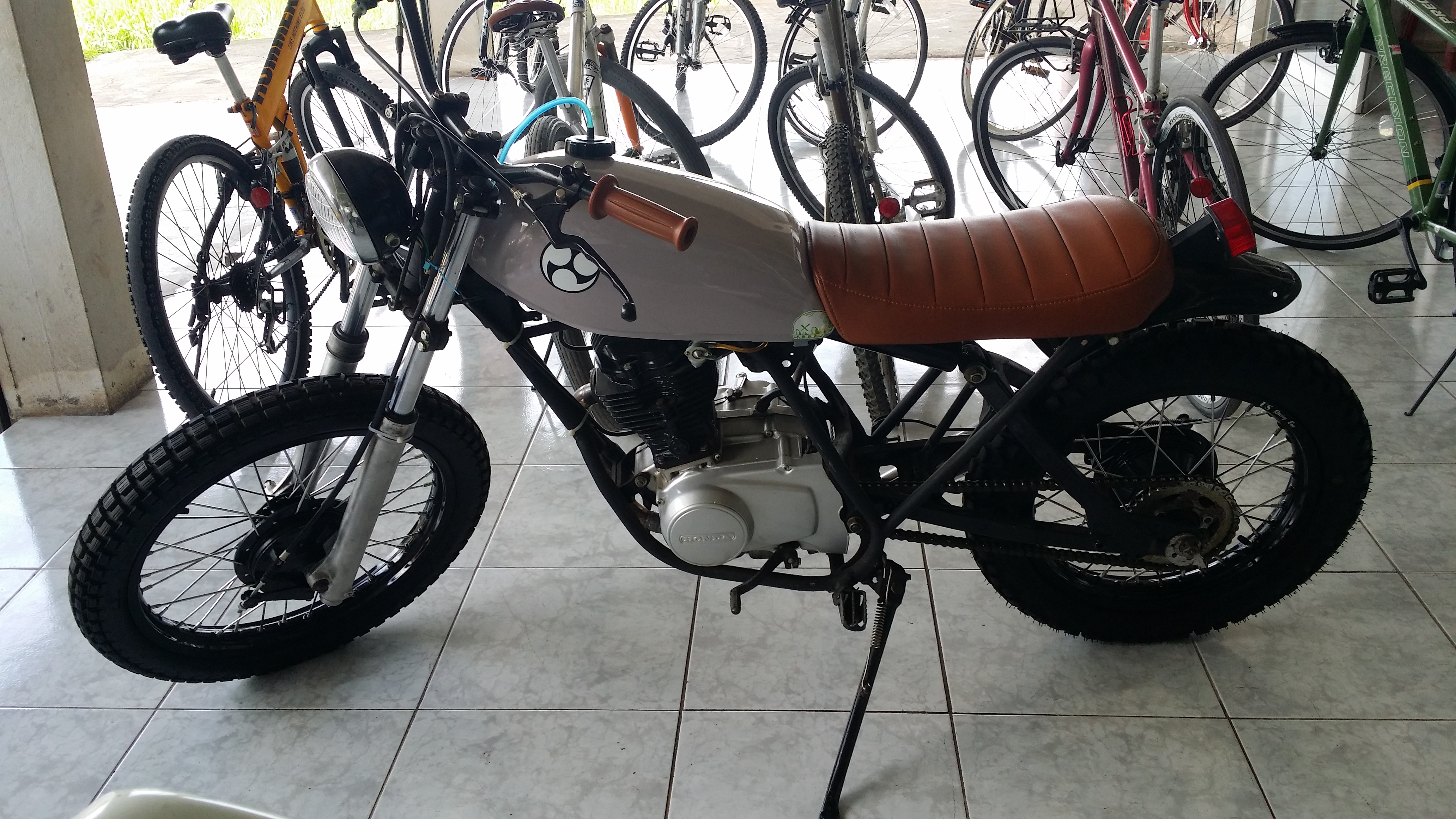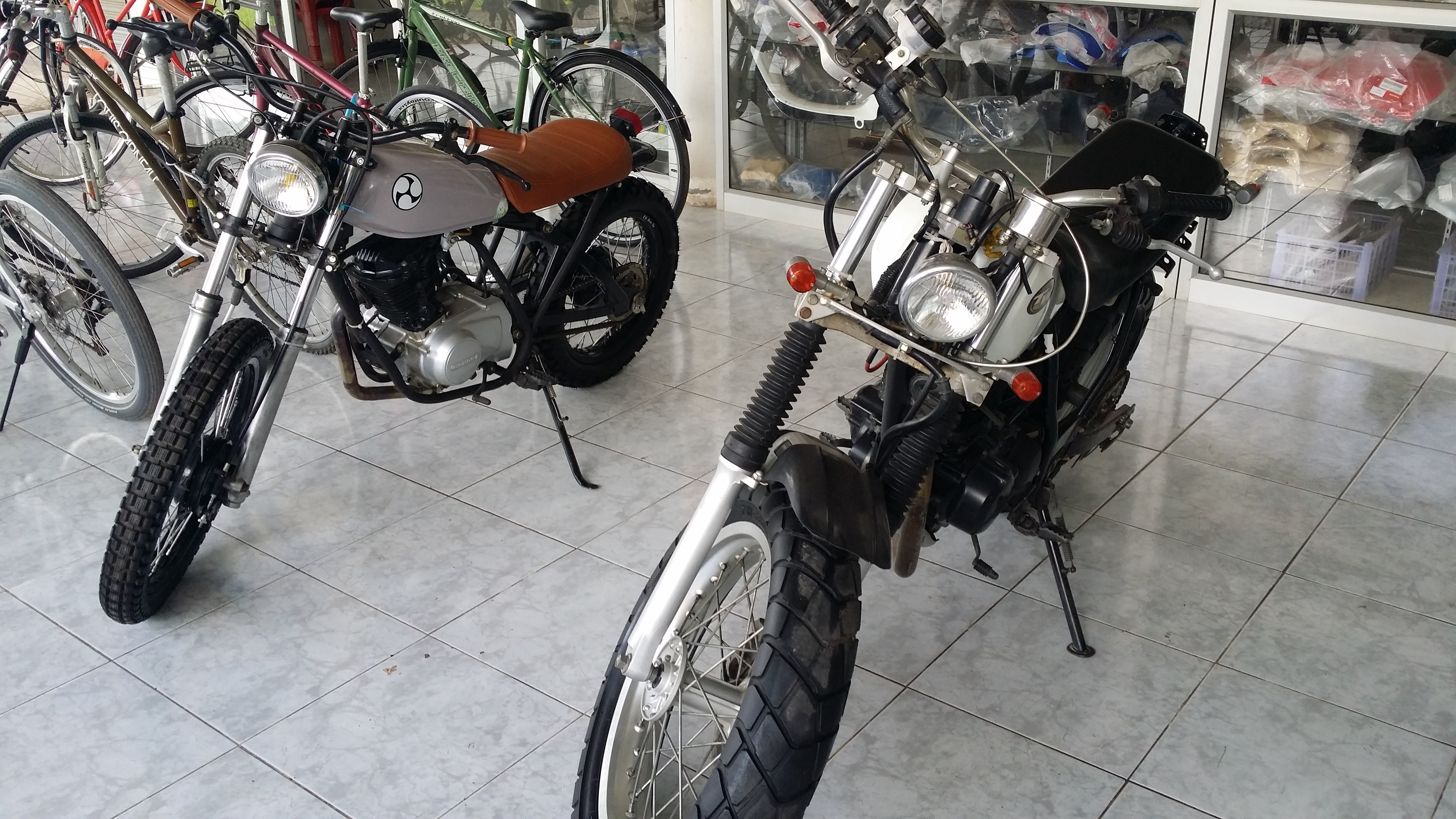 Habe soeben die Bilder noch gesehen. Die Custom Honda sieht echt cool aus. Die würde mir auch gefallen. Ich denke mal das sind Umbauten und nicht so vom Honda verkauft. Bei uns gibt es einige solcher Umbauten auf Basis der Honda TMX. Die TMX sieht aus wie ein Motorrad aus wie ein Motorrad in den frühen 80iger ausgesehen hat. Es gab sie als 125er und 155er bis Honda sie plötzlich durch die Supremo ersetzt hatte. Es war im Grunde immer noch die gleiche TMX aber einfach viel moderner im Auftritt.
