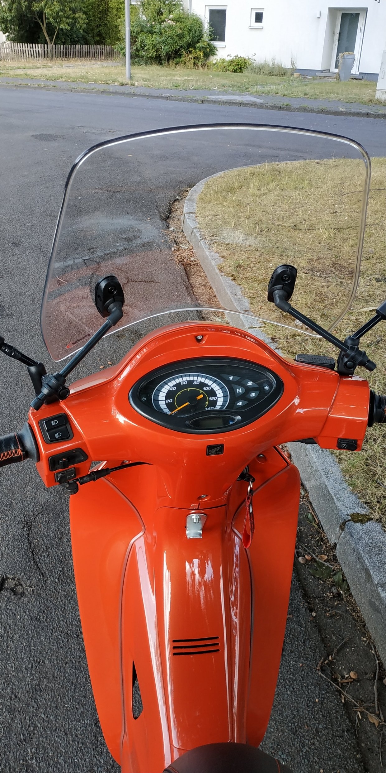 Mit gut abgestimmten 148ccm sollte sie in der Kombi mit Scheibe dann durchweg stabil 100km/h schaffen - dann werde ich meine Runden vom Feldweg auf die Landstraße ausweiten :mrgreen: