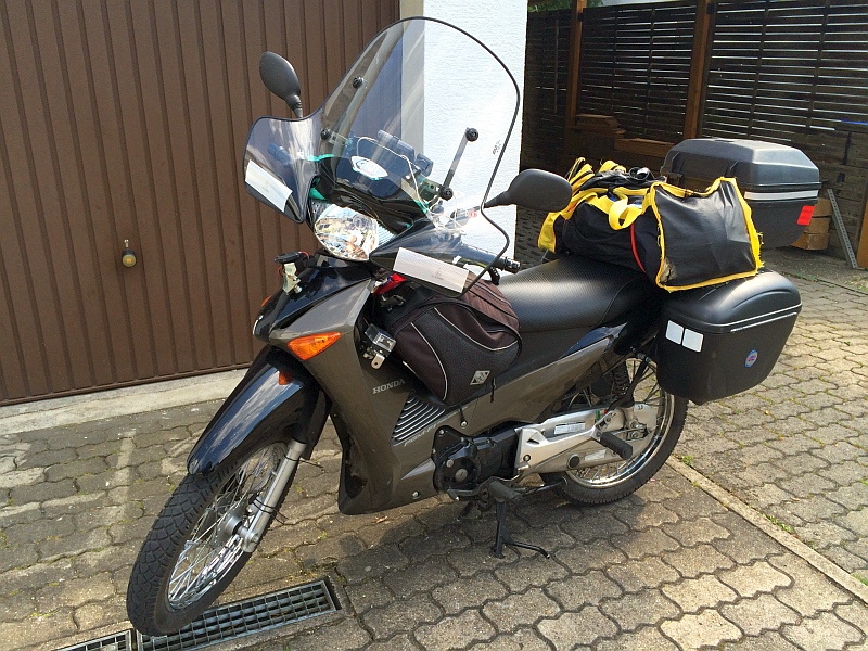 Momentaner Eindruck heute morgen nach ca 20km mit Koffern, Topcase und Gepäcktasche: