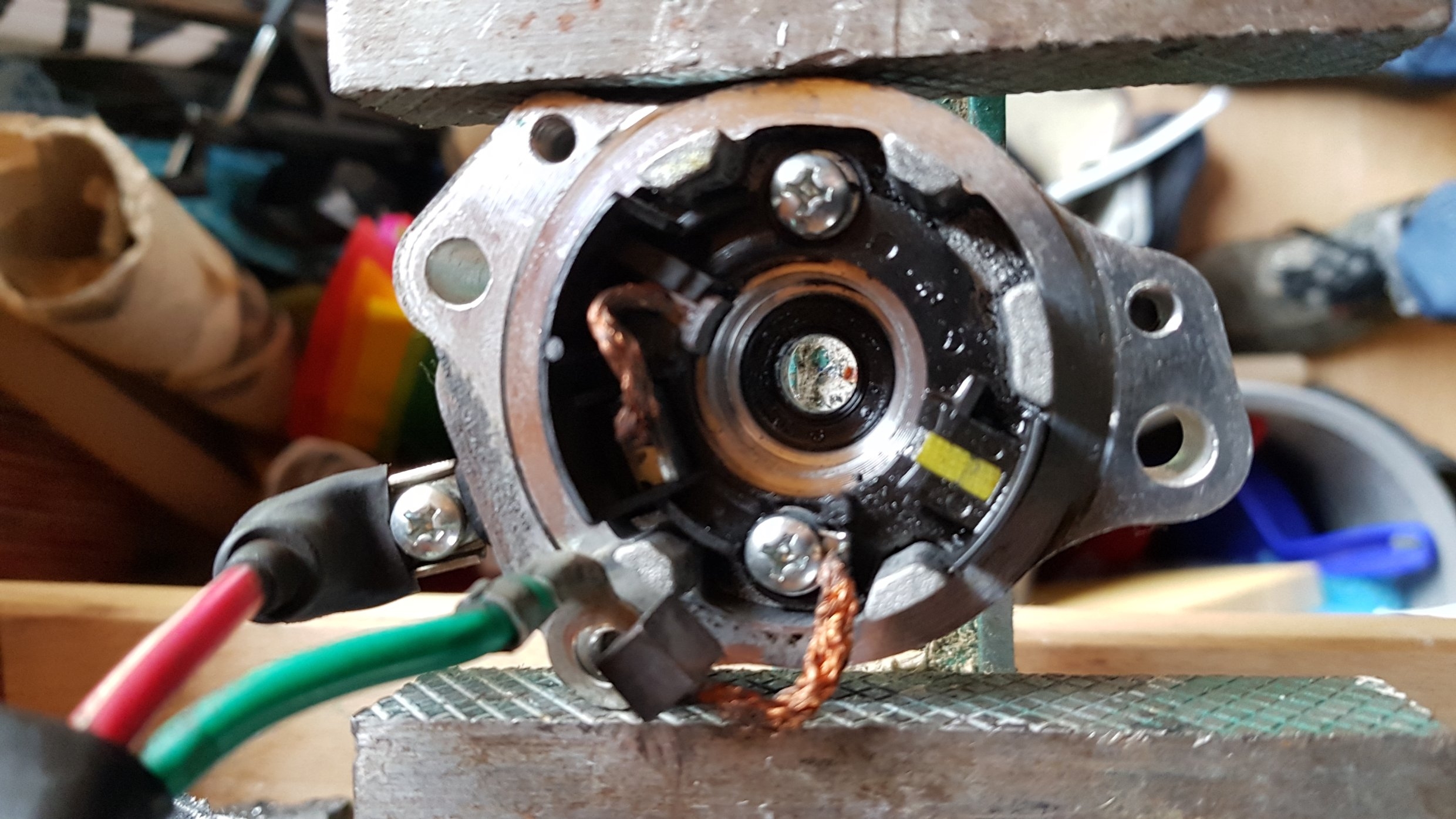So, die Bindfadentechnik hat also geholfen die Federn mit den Schleifkohlen zu fixieren während des Zusammenbaus. Vorher alles schön sauber gemacht.