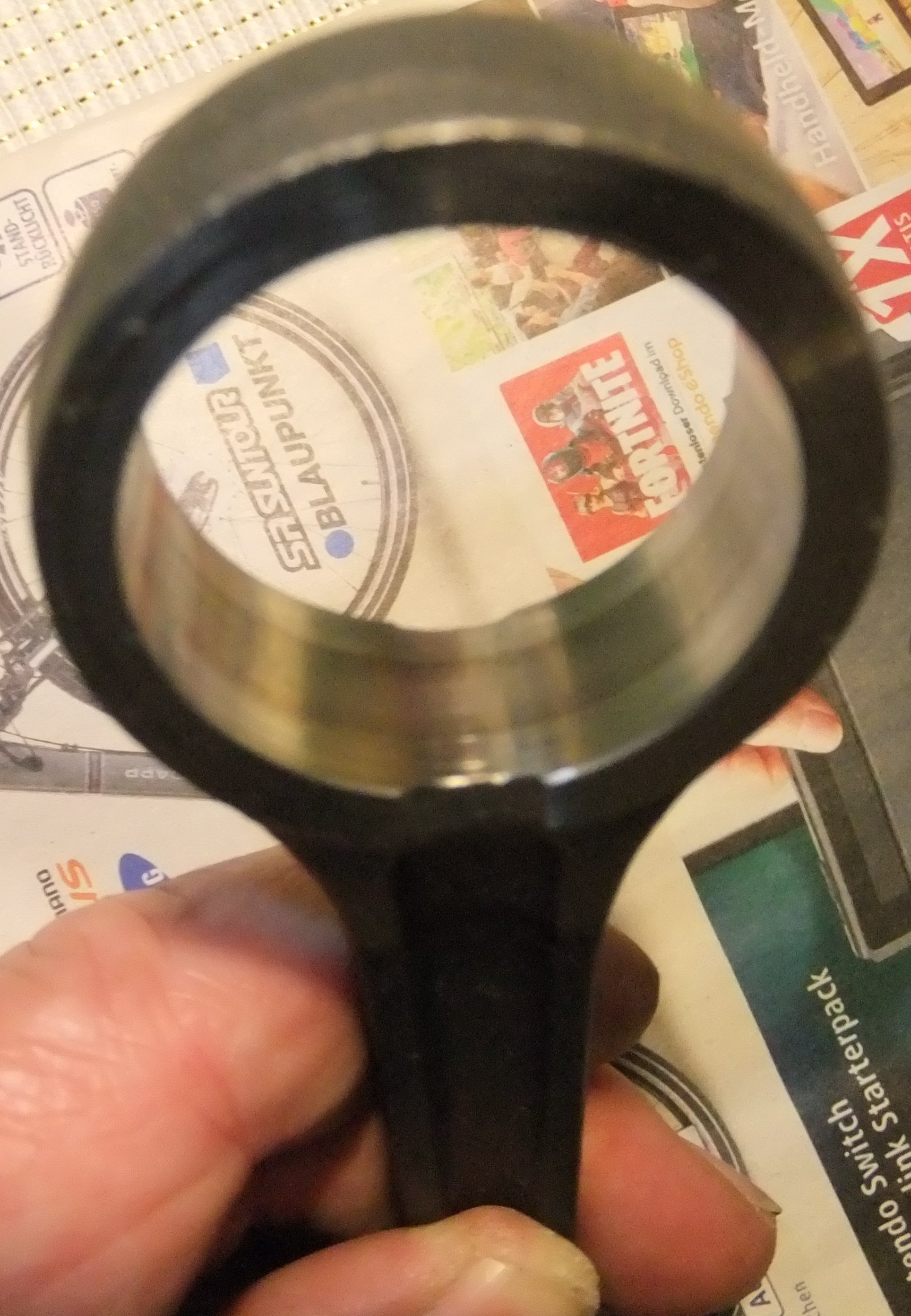 die KW ist zerlegt und die Überraschung perfekt. Es ist nicht das Pleuellager. Der Kolben fraß aufgrund Ölmangel und hat das Kolbenbolzenauge auch gleich in Mitleidenschaft gezogen. Die Kerle hatten ja immer mit eingeschraubtem Messstab geprüft und ich hab dem Motor vollends den Rest gegeben.