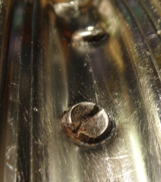 Auf beiden hatten sich ein paar Speichennippel soweit durchgedrückt daß der Schlitz beides durchtrennte.