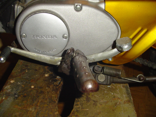 Als nächste Baugruppe steht nun die Fußbremsanlage an, ist sie doch etwas anders als die von der Honda Dax gewohnten Version, da gibt es nur einen kompletten Hebel, hier sind es 3 Teile deren Funktion es ist auch die Wirkung vom Handbremshebel auf das hintere Rad zu übertragen, wer es will.