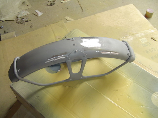 Das letzte Teil das lackiert wurde ist der Kettenschutz.