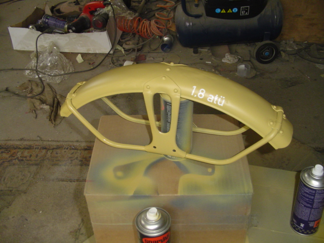 Aber heute hab ich noch was angestellt, die Luftdruckaufkleber vornen aufgeklebt und mit Lack versiegelt.