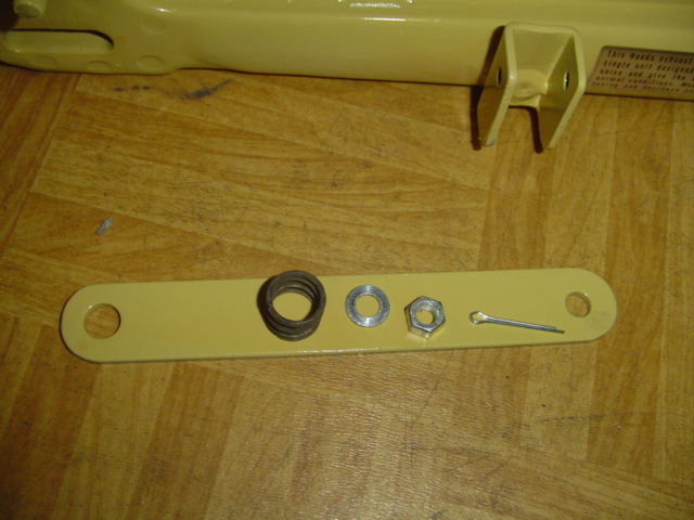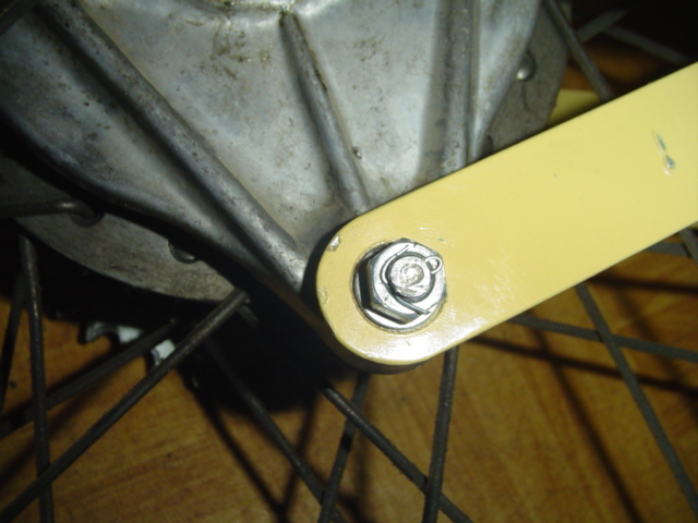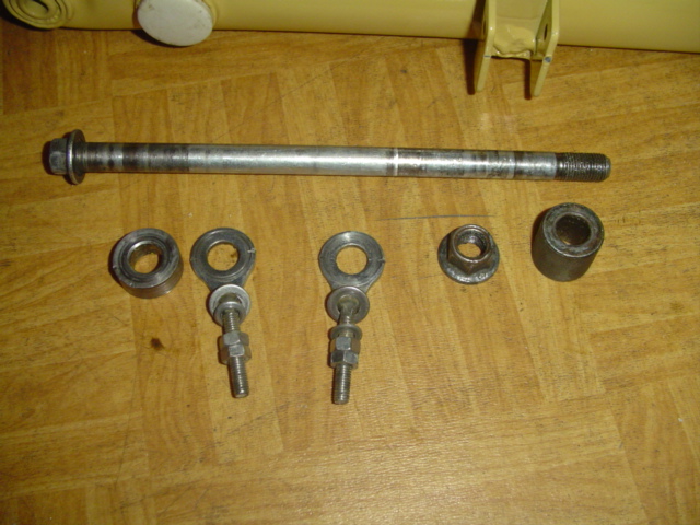 Auch hier wurden die Teile für die Befestigung der Bremshalterungsplatte zurechtgelegt. Auch hier nachdem der Splint gesetzt ist, etwas lockern, das ganze sollte beweglich sein.