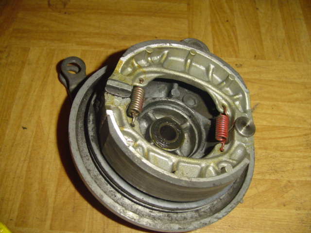 Hinten die alten Bremsbeläge durch Neue ersetzt, die Alten sind zwar optisch noch gut aber meist hart und das dient nicht unbedingt der Sicherheit. Beim Einbau der Bremsbeläge darauf achten das die Bremsnocke sich leicht bewegt, ansonsten zerlegen und fetten, das hab ich bei ihr mal gemacht, ist schon etwas her, deshalb an dieser Stelle keine Bilder davon.