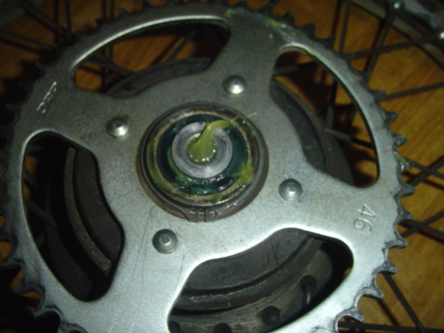 Vor dem Einbau des schmalen Distanzrings die Öffnung gut mit Fett einschmieren, damit wird dann die Achse gefettet und rostet nicht an.