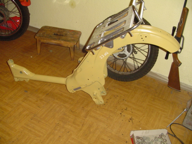 Die Teile für die Achse zurechtgelegt, neuer Kettenspanner ist immer gut.