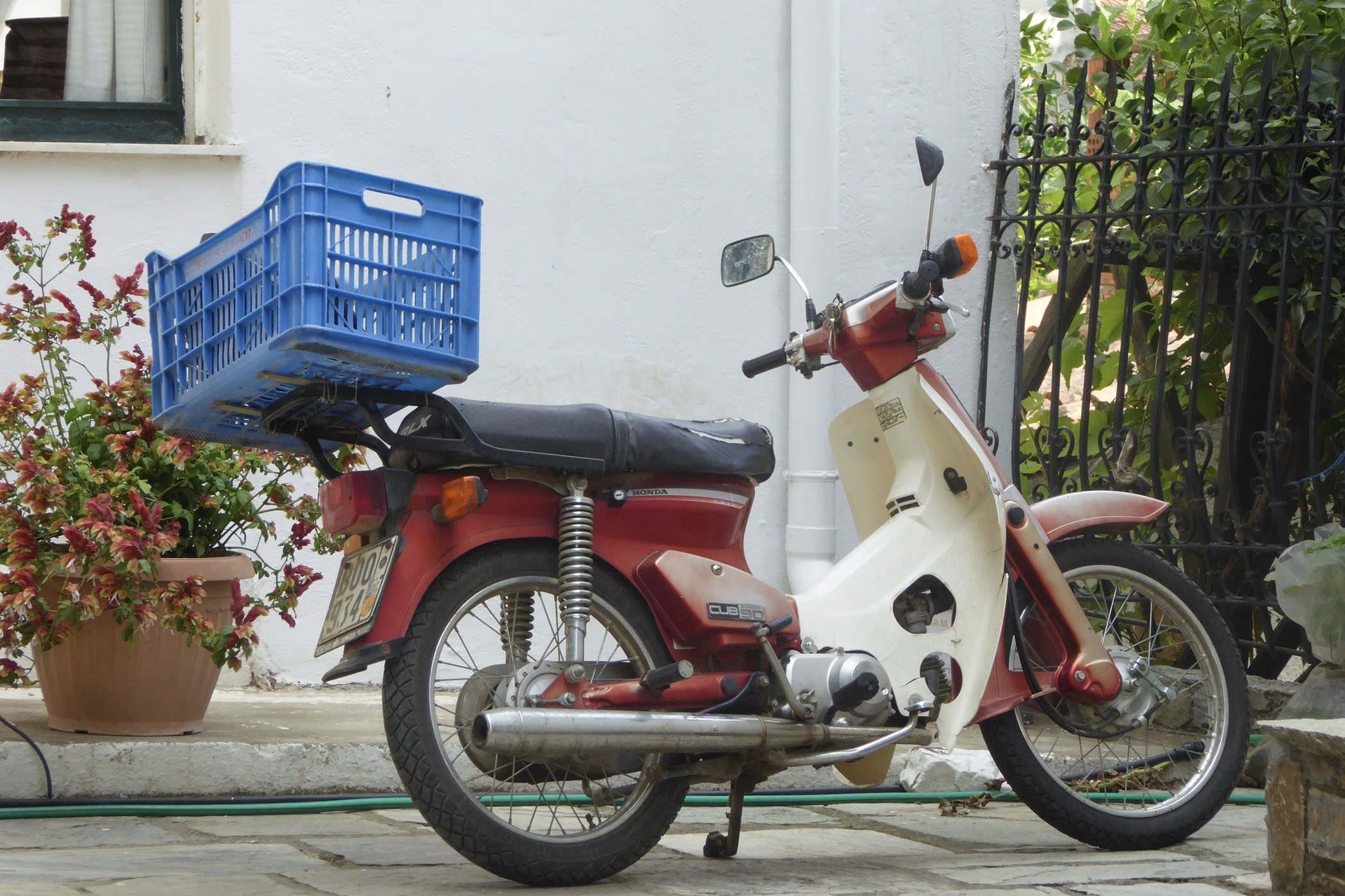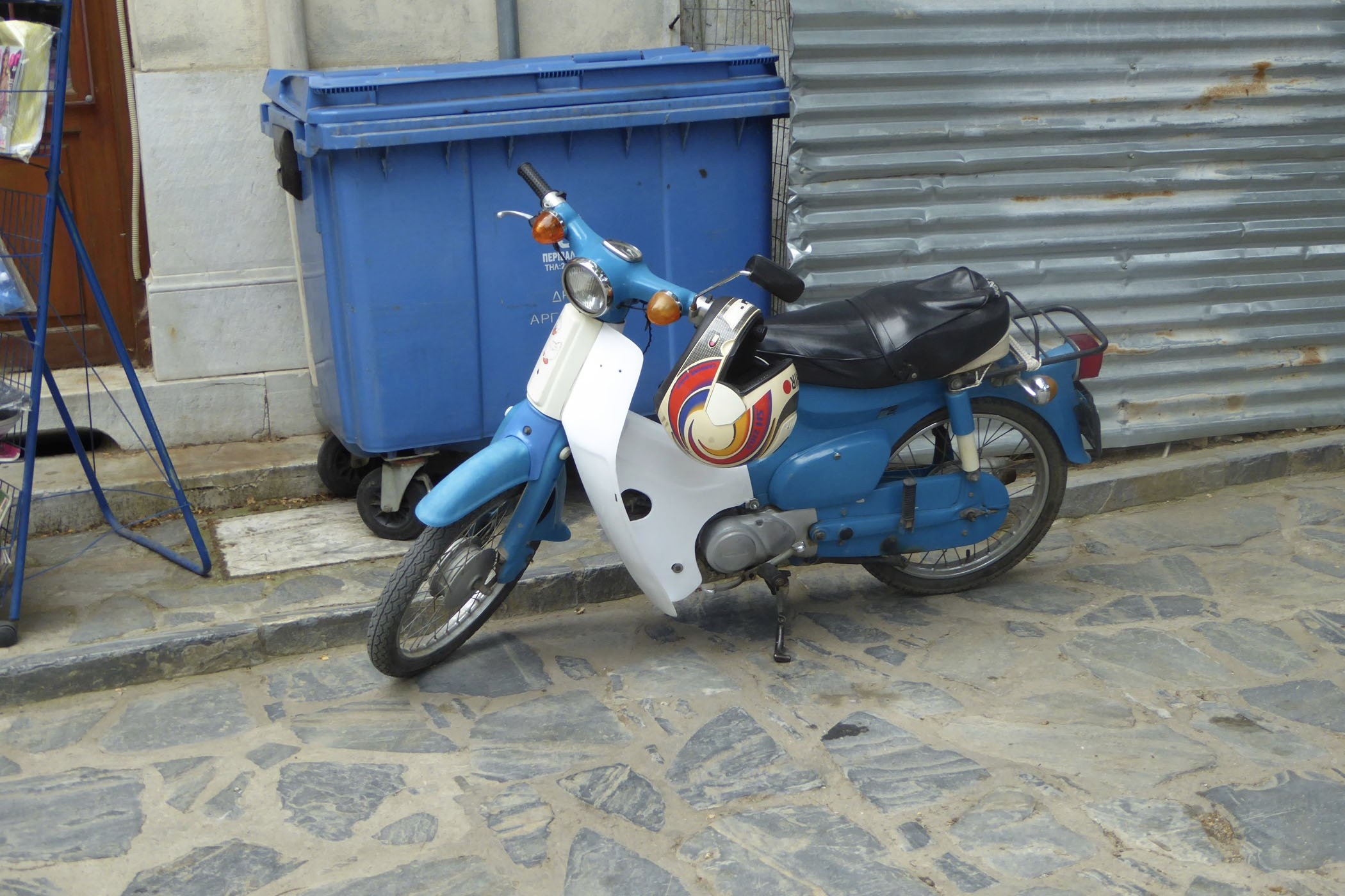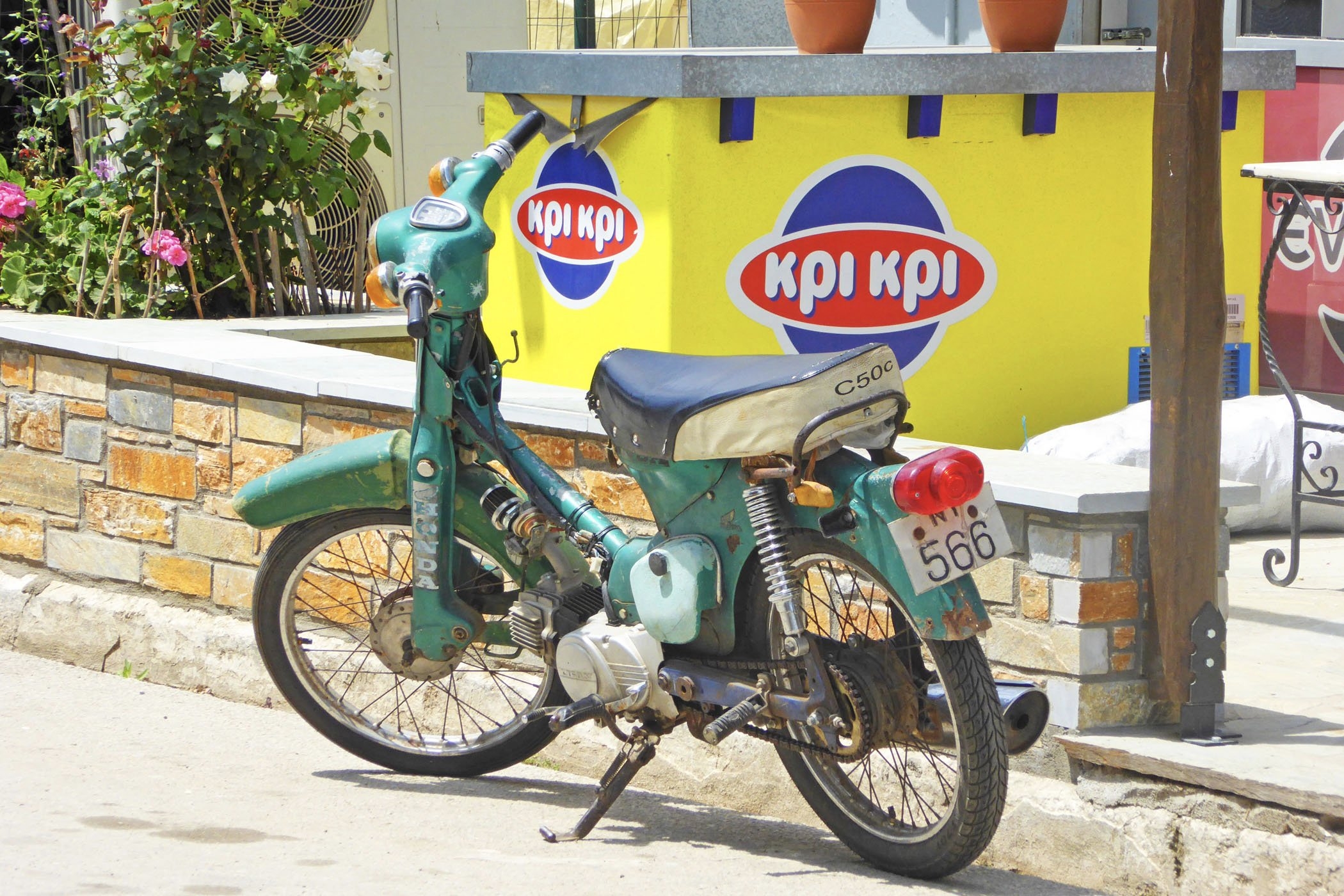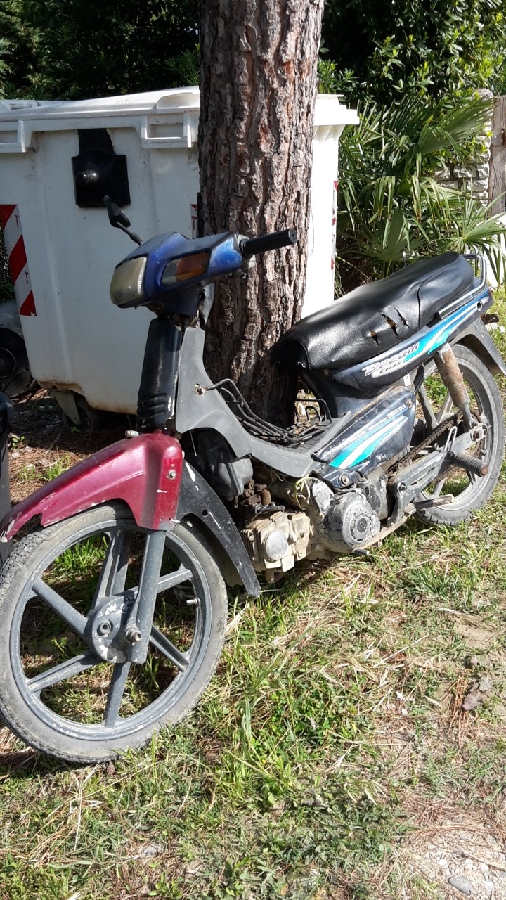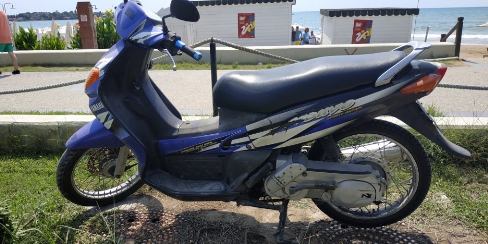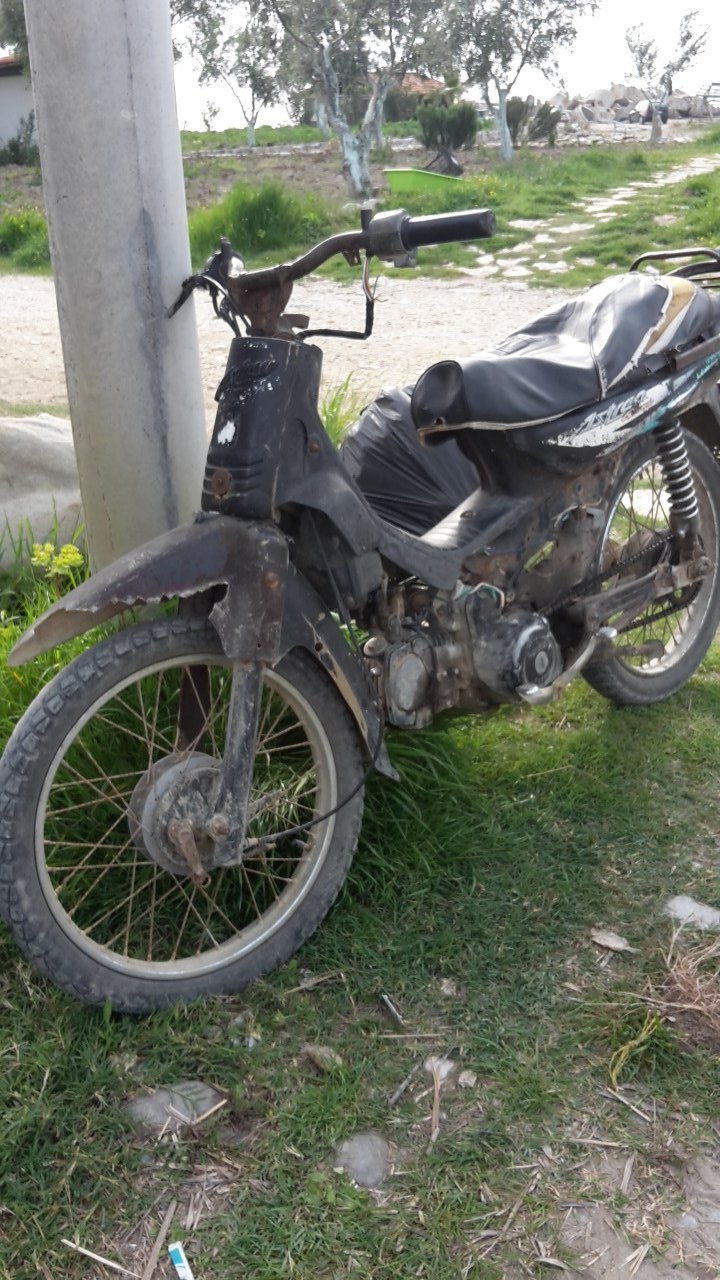 Heute die Yamaha CUB mit Triebsatzschwinge von der anderen Seite (mit dem Mittelmeer im Hintergrund 8-) )