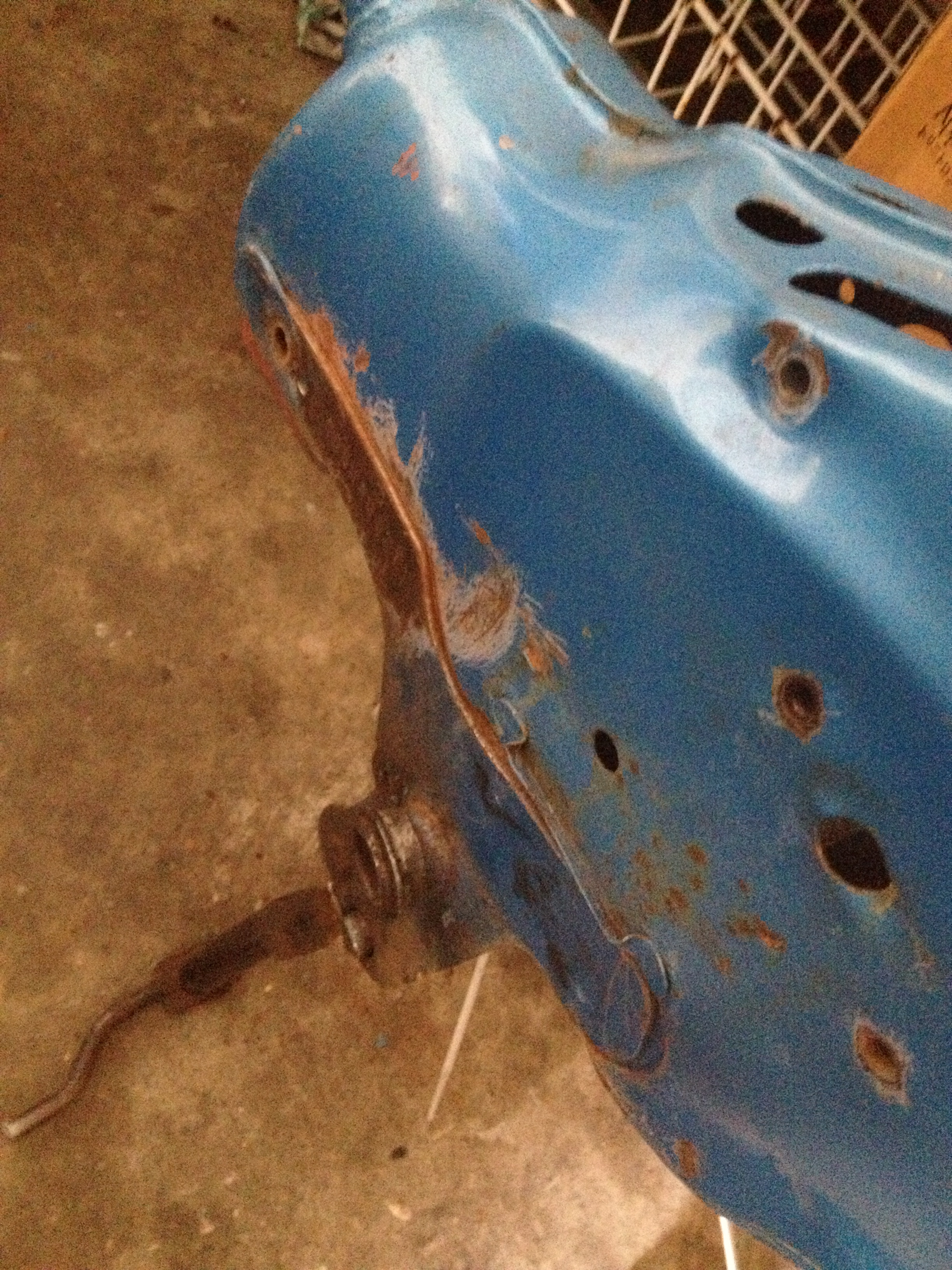 Rost hat sie nicht viel gehabt......Durchrostet war sie nur an der Schwinge und hinter der Batterie.
