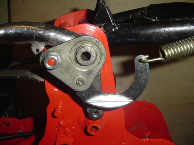 Den Gummianschlag am Hauptständer erneuert. Beim Einbau des Bremshebels, Hauptständer wurde ein neue Hauptständerfeder verbaut und ein neuer "Umlenkhebel" den Bolzen gut fetten und dabei achten das der Bremshebel leichtgängig ist, damit er später ohne Probleme in die Ruhestellung zurückfällt.