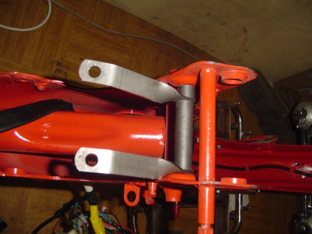 Die Verstärkungshalter für die Stoßdämpfer, den externen Benzinhalter und den Gepäckträger verbauen.